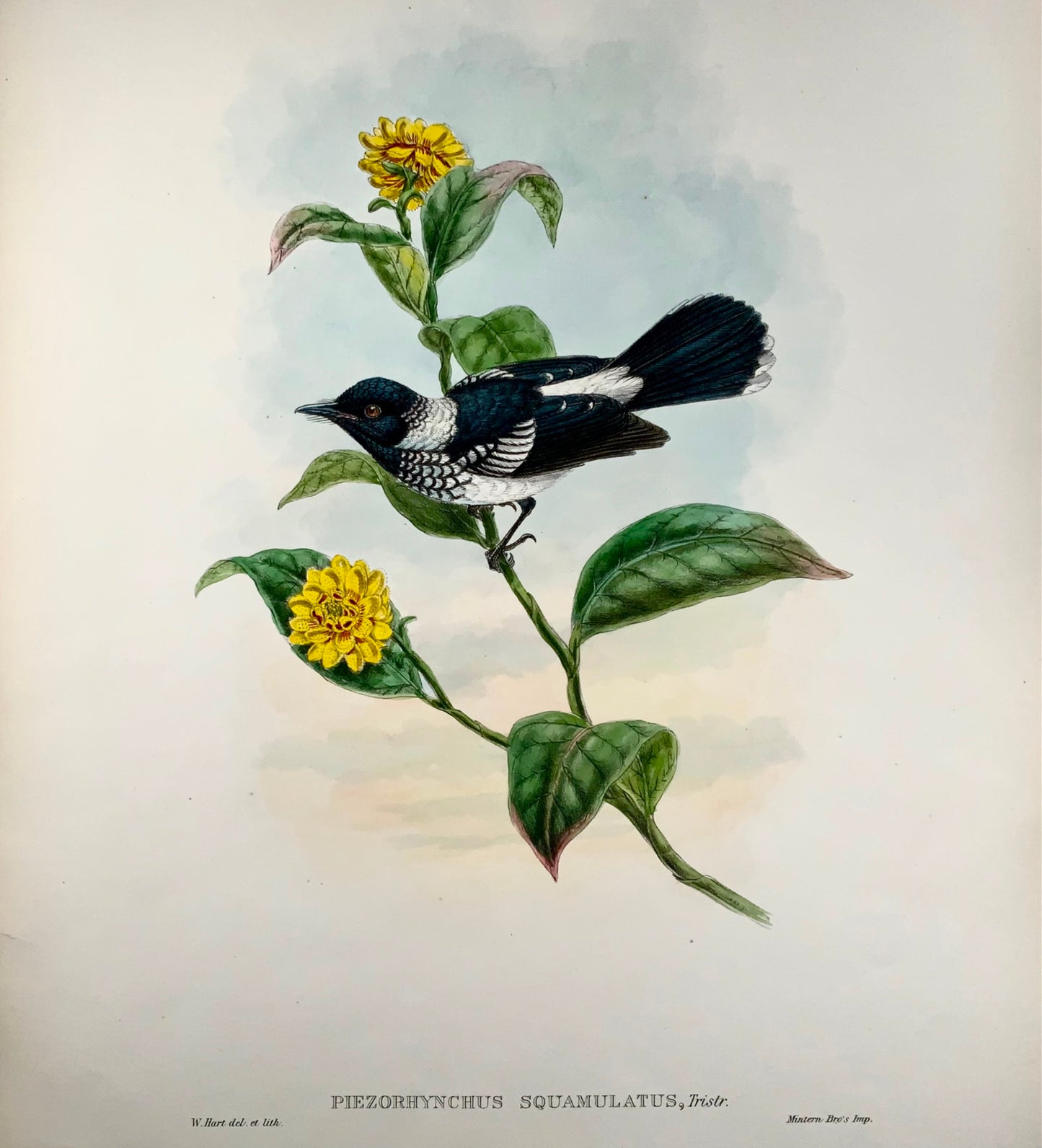 Superb lithograph of the White-collared monarch from John Gould’s final work: The Birds of New Guinea and the adjacent Papuan Islands, including many new species recently discovered in Australia.