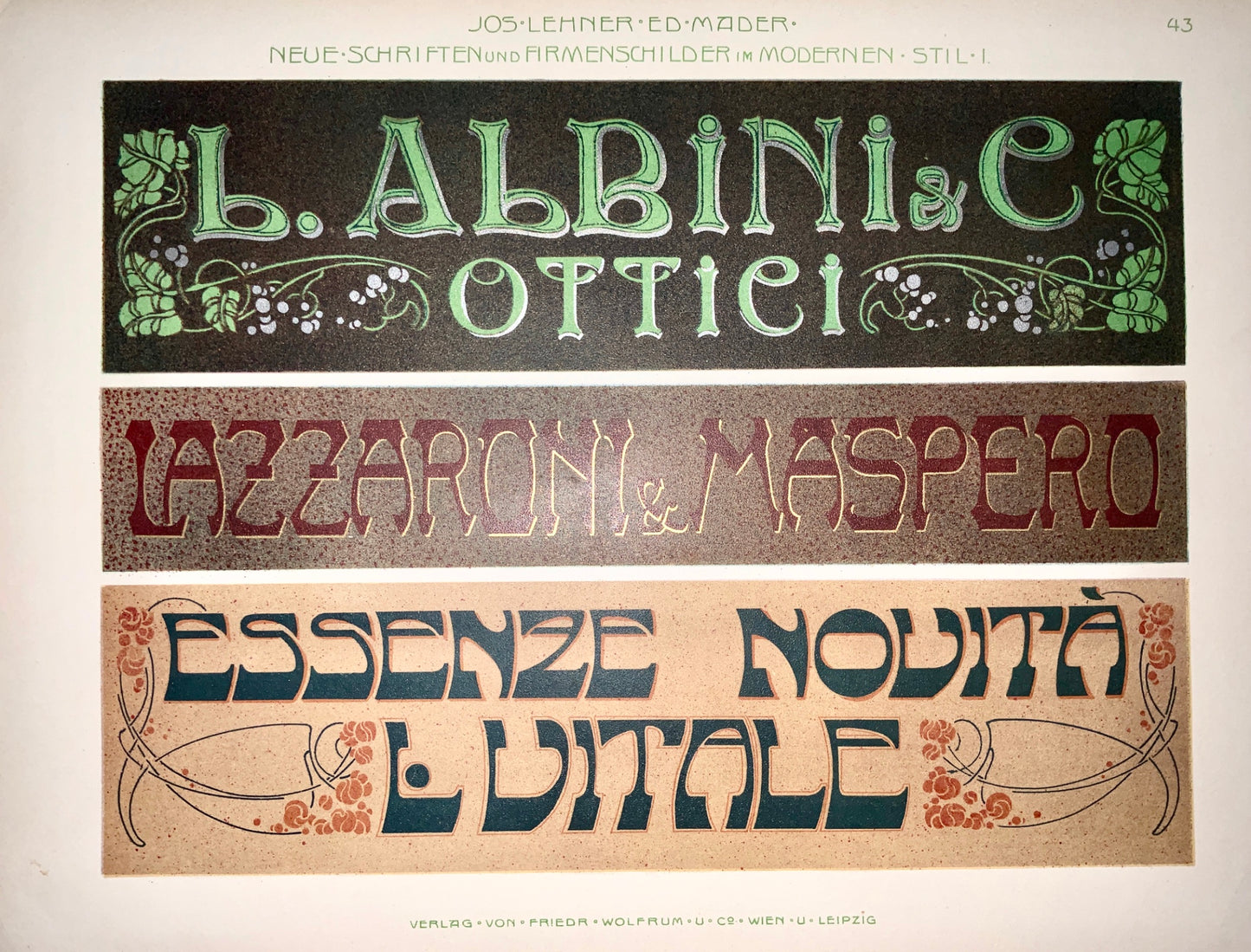 1890 JUGENDSTIL ADVERTISING Typography Italian Style - Lehner Mader 45 cm