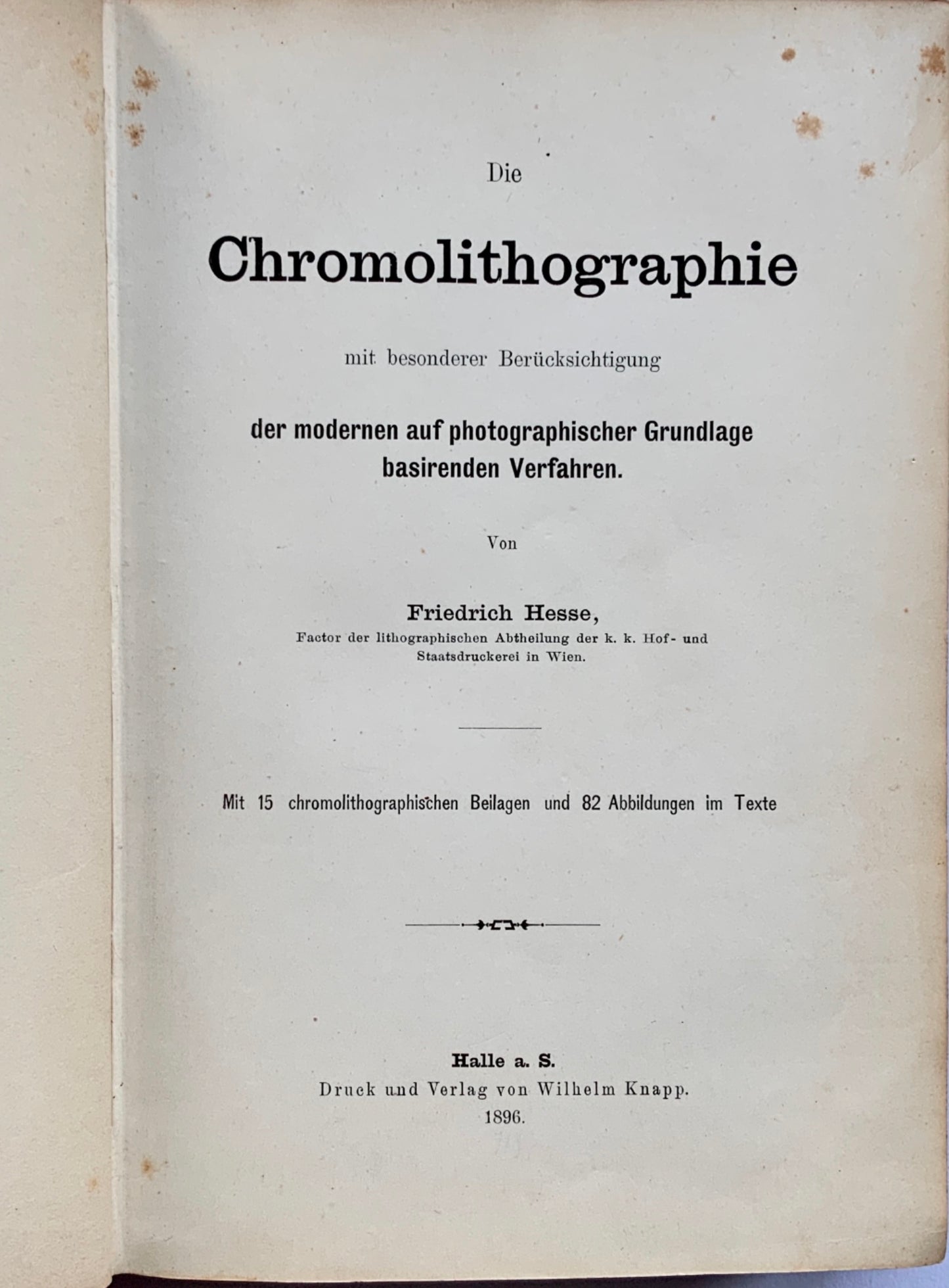 Die Chromolithographie, mit besonderer Berücksichtigung der modernen, auf photographischer Grundlage beruhenden Verfahren.