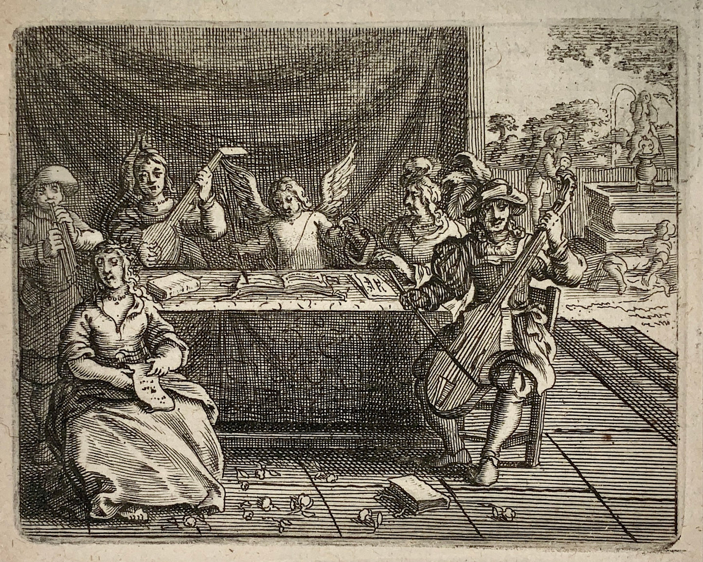 1656 Adriaen van de Venne - Emblem - ‘Amor docet Musicam’ cello angel lute flute