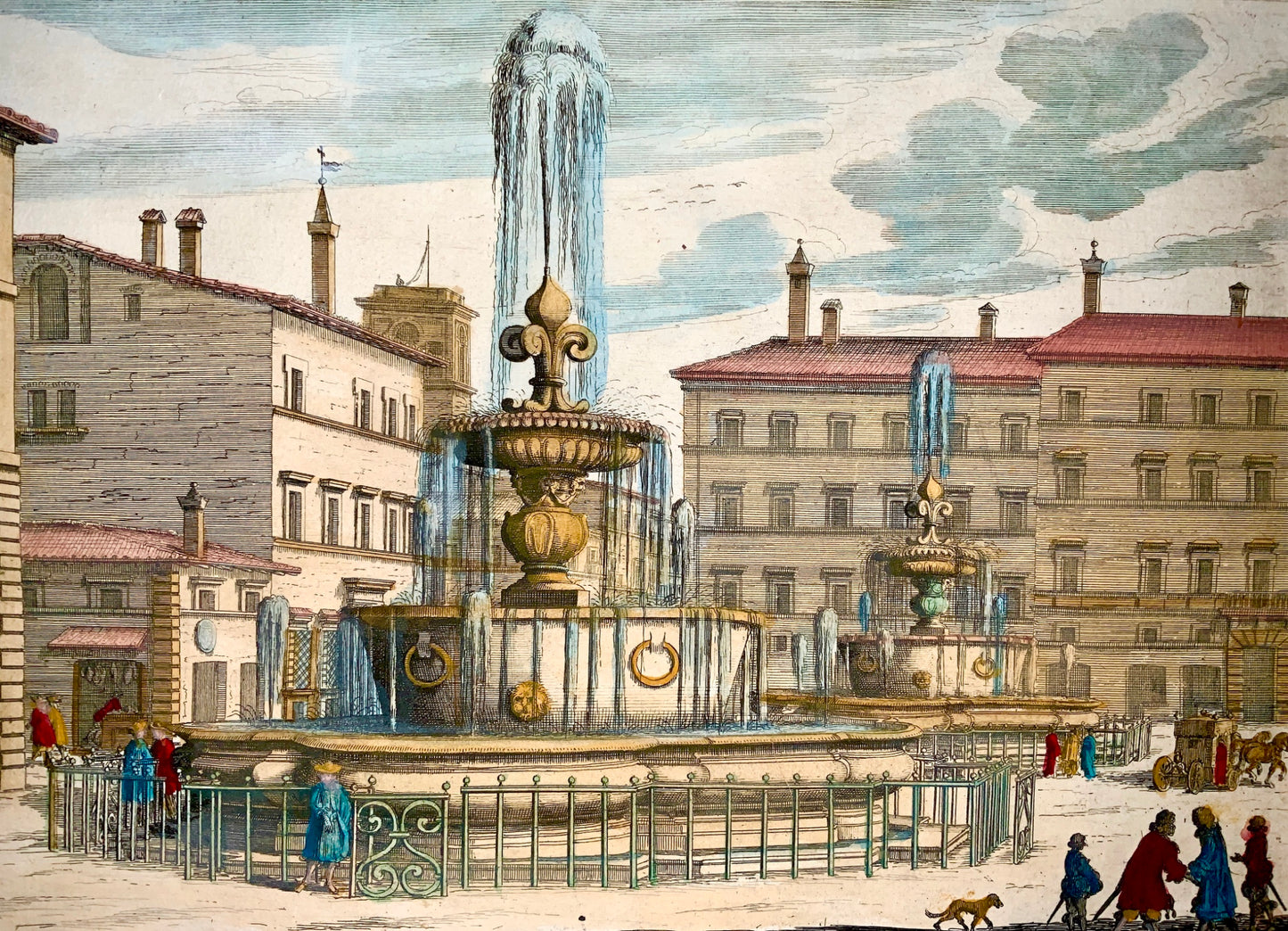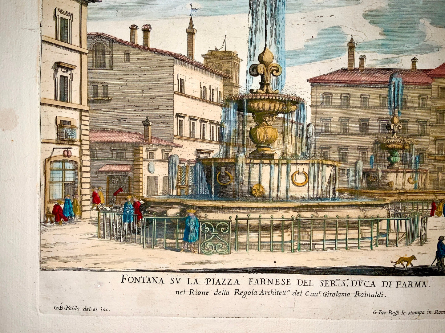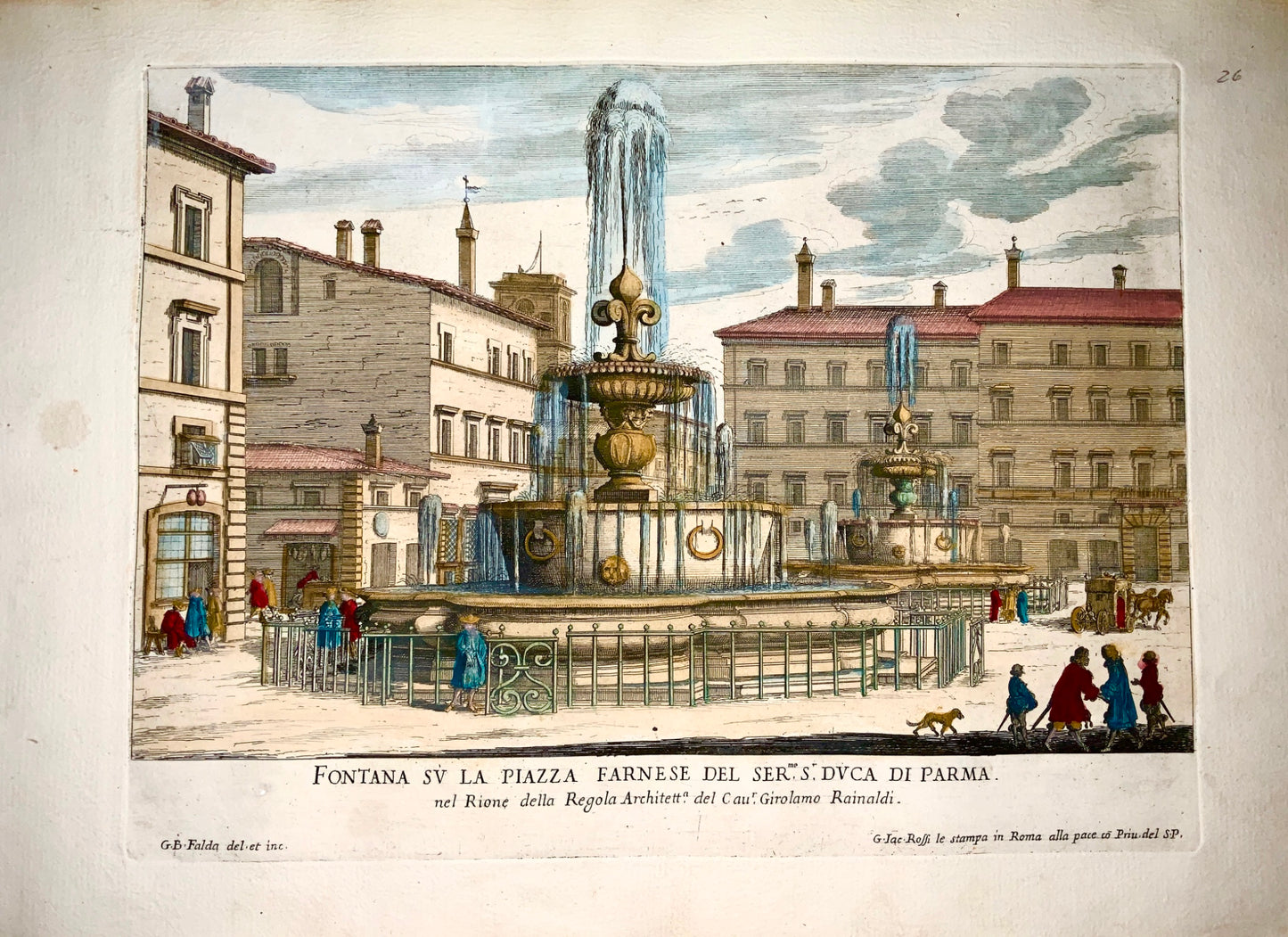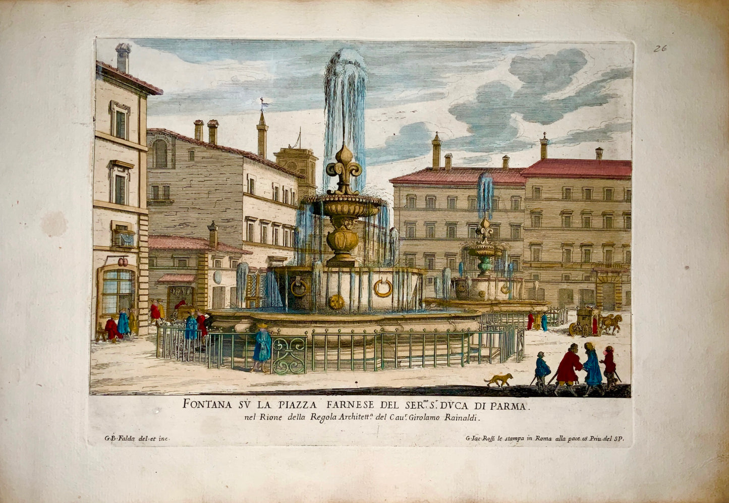 1676 G. B. Falda (1643-1678) Piazza Farnese, Rome, Italy 50 cm Hand colour - Architecture