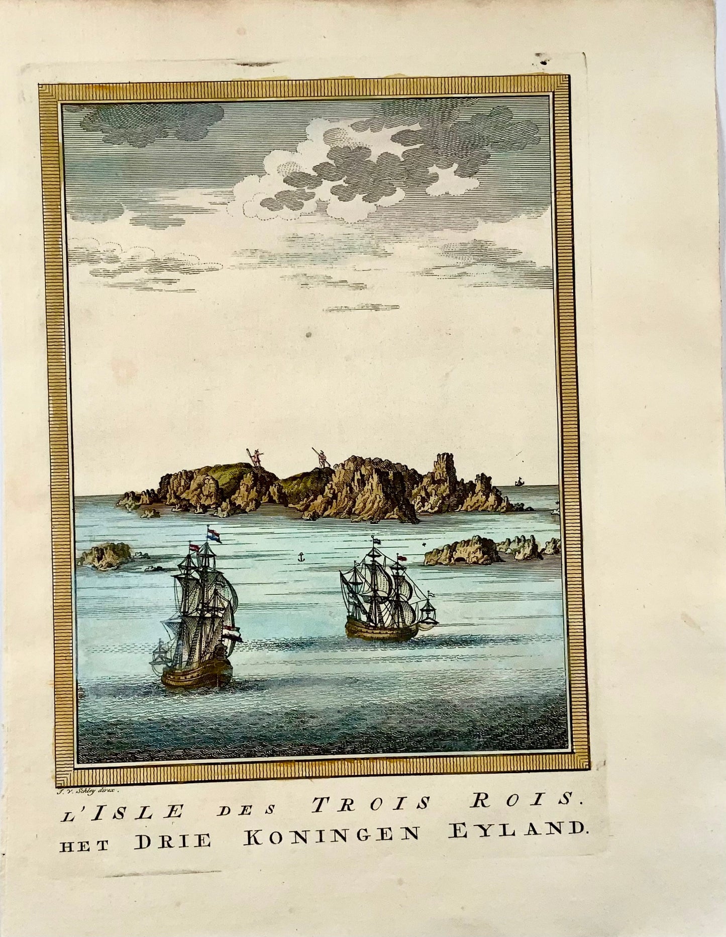 1750 J. Schley, Manawatawh, Three Kings Island, New Zealand, map, foreign topography