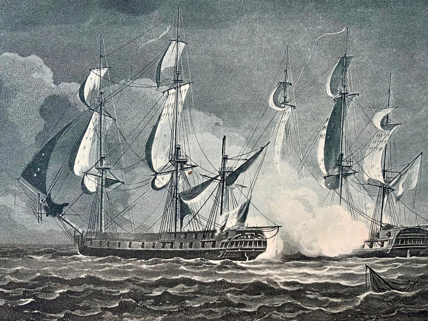 1820 Sutherland, Capture of La Guerrière in 1806, maritime aquatint