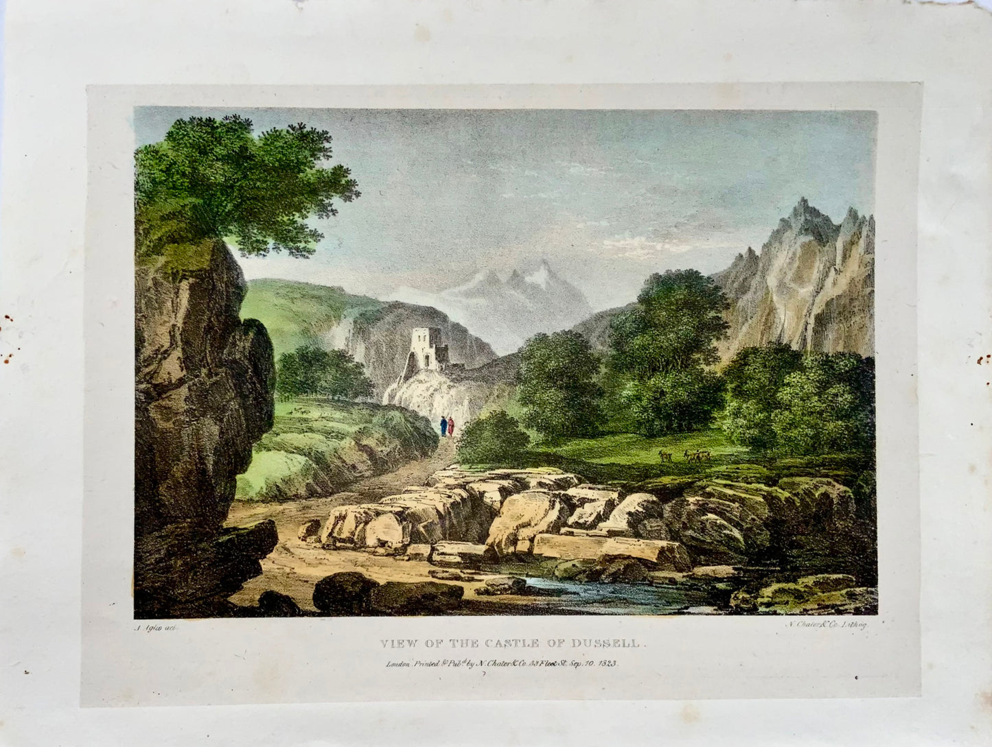 1823 View of the Castle of Dussell, Germany, Agostino Aglio, lithograph, landscape
