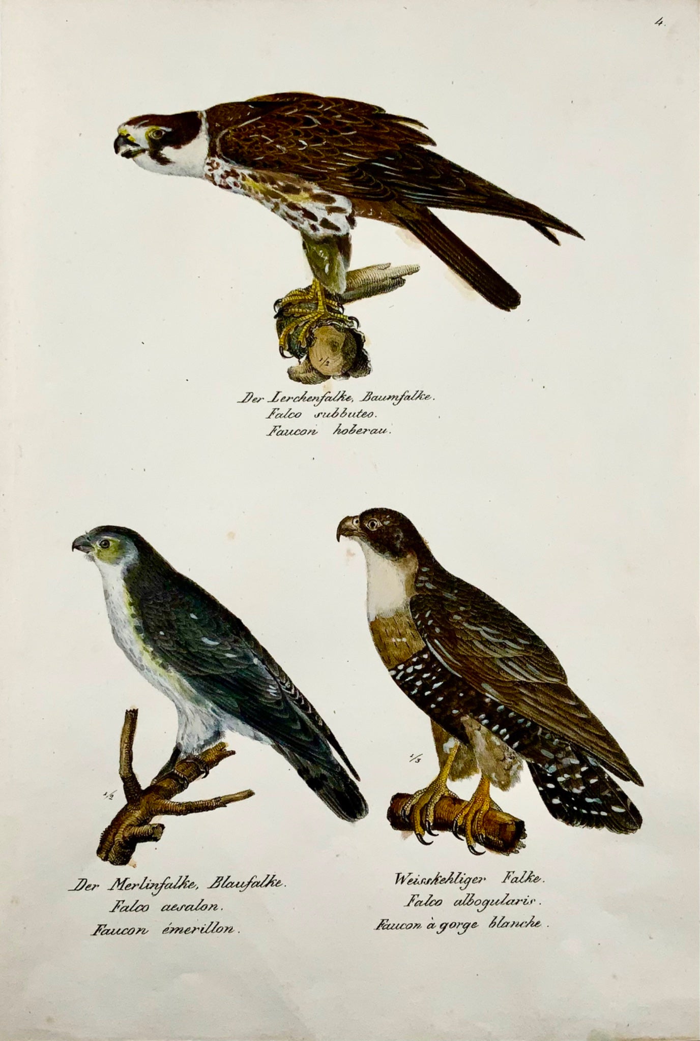 1830 Merlin Falcon - Ornithology Brodtmann hand coloured FOLIO lithograph