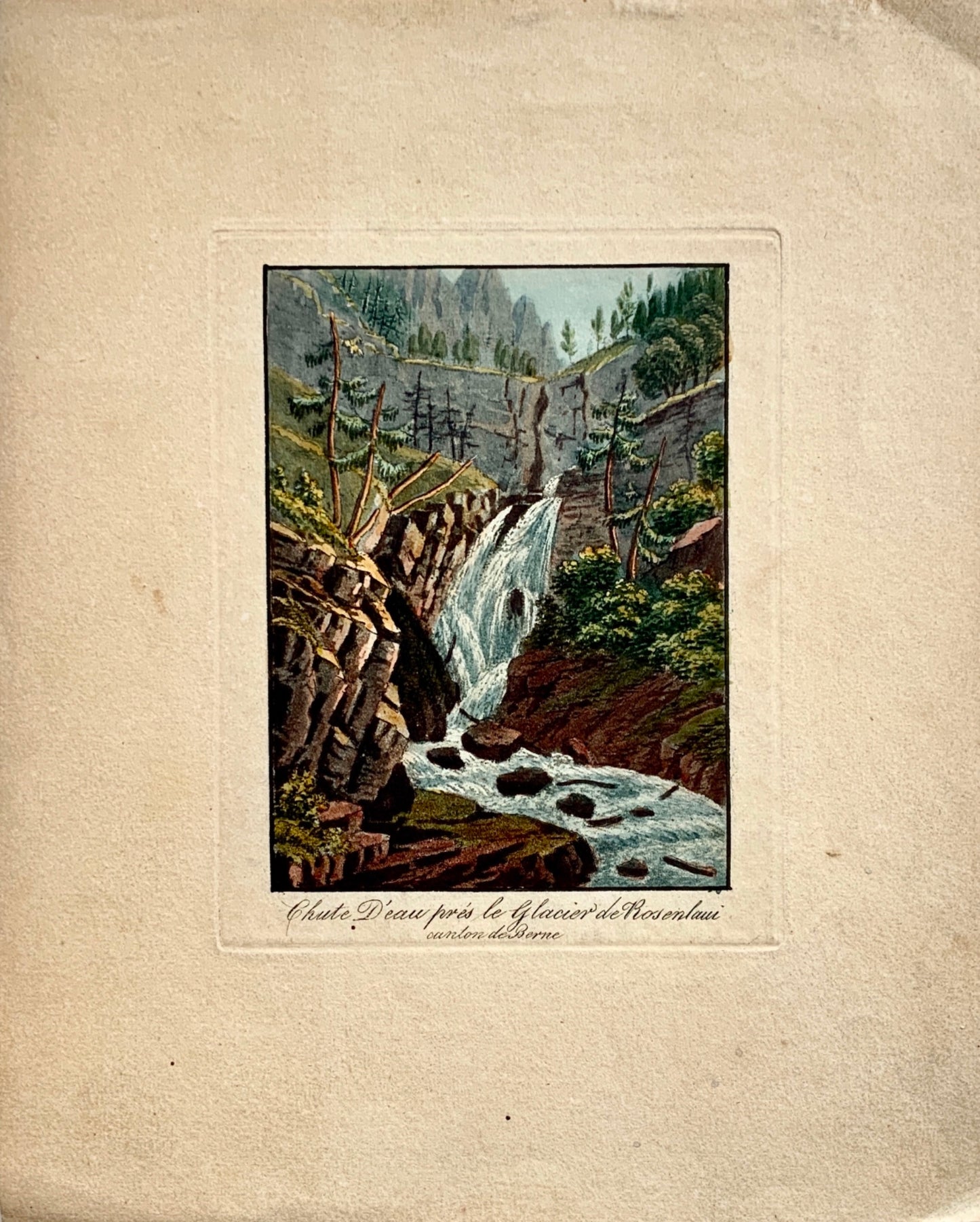 1840 c Falls below Rosenlaui Glacier MEIRINGEN hand col. aquatint Switzerland