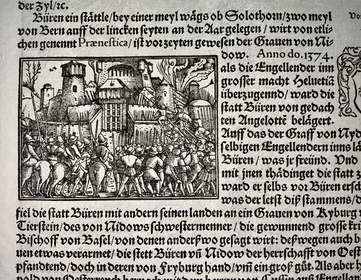 Original woodcut leaf from the first issue of Stumpf’s famed Swiss Chronicle of 1548