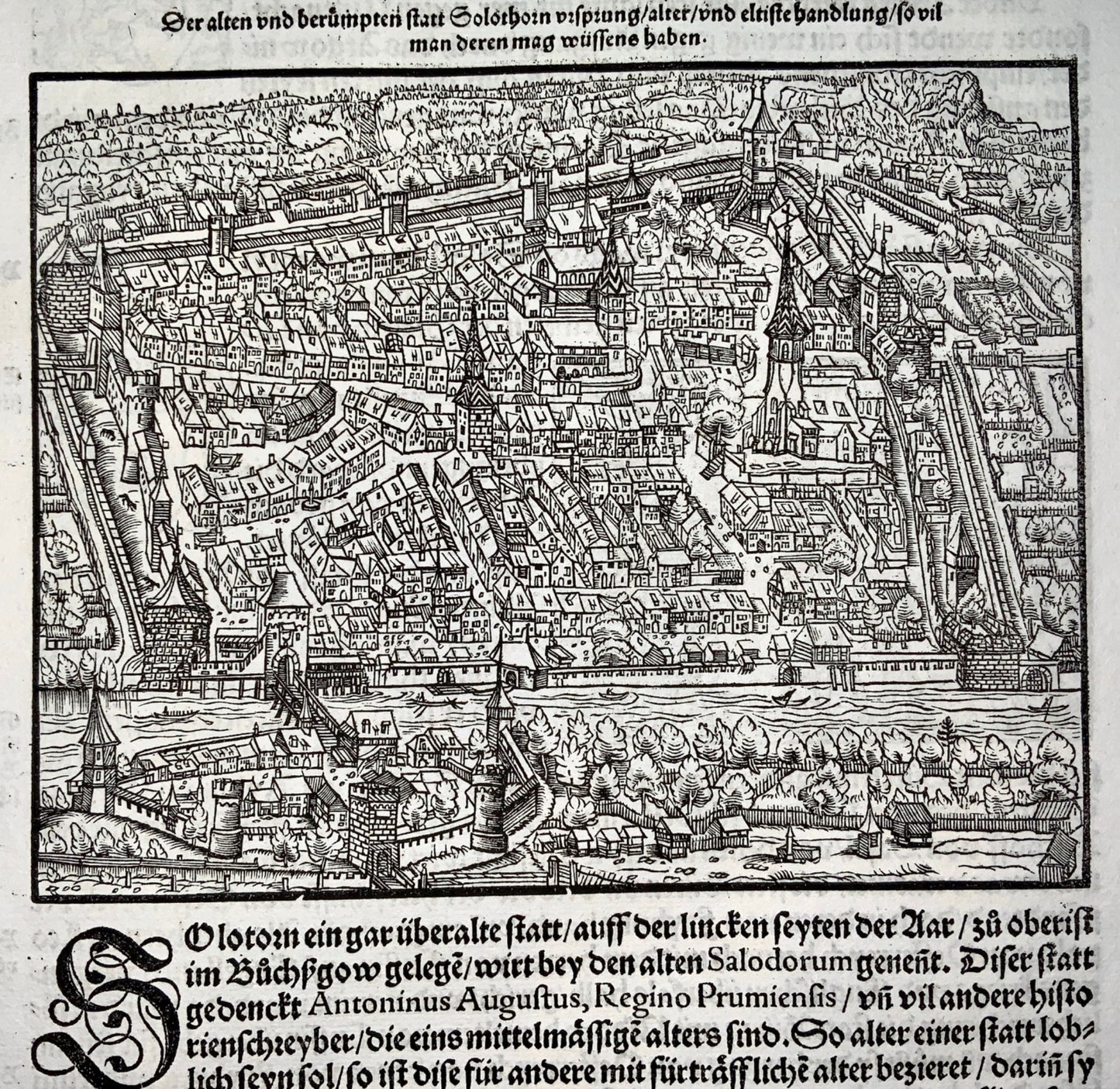 1548 Joh. Stumpf - Solothurn Switzerland - Master Woodcut - Map, Town Plan