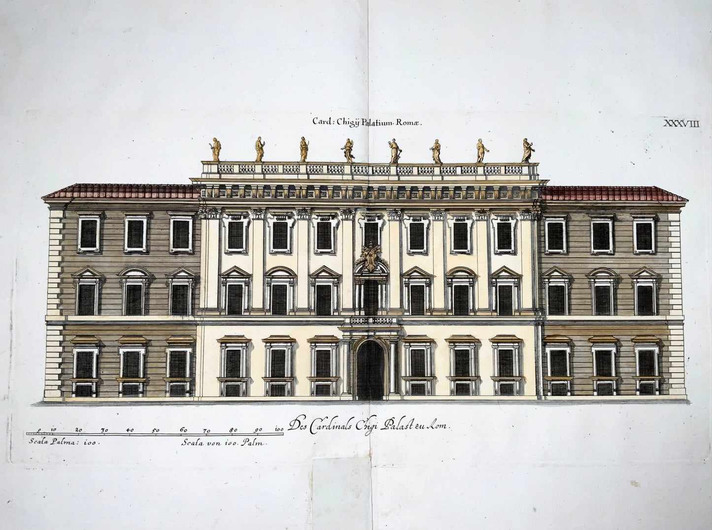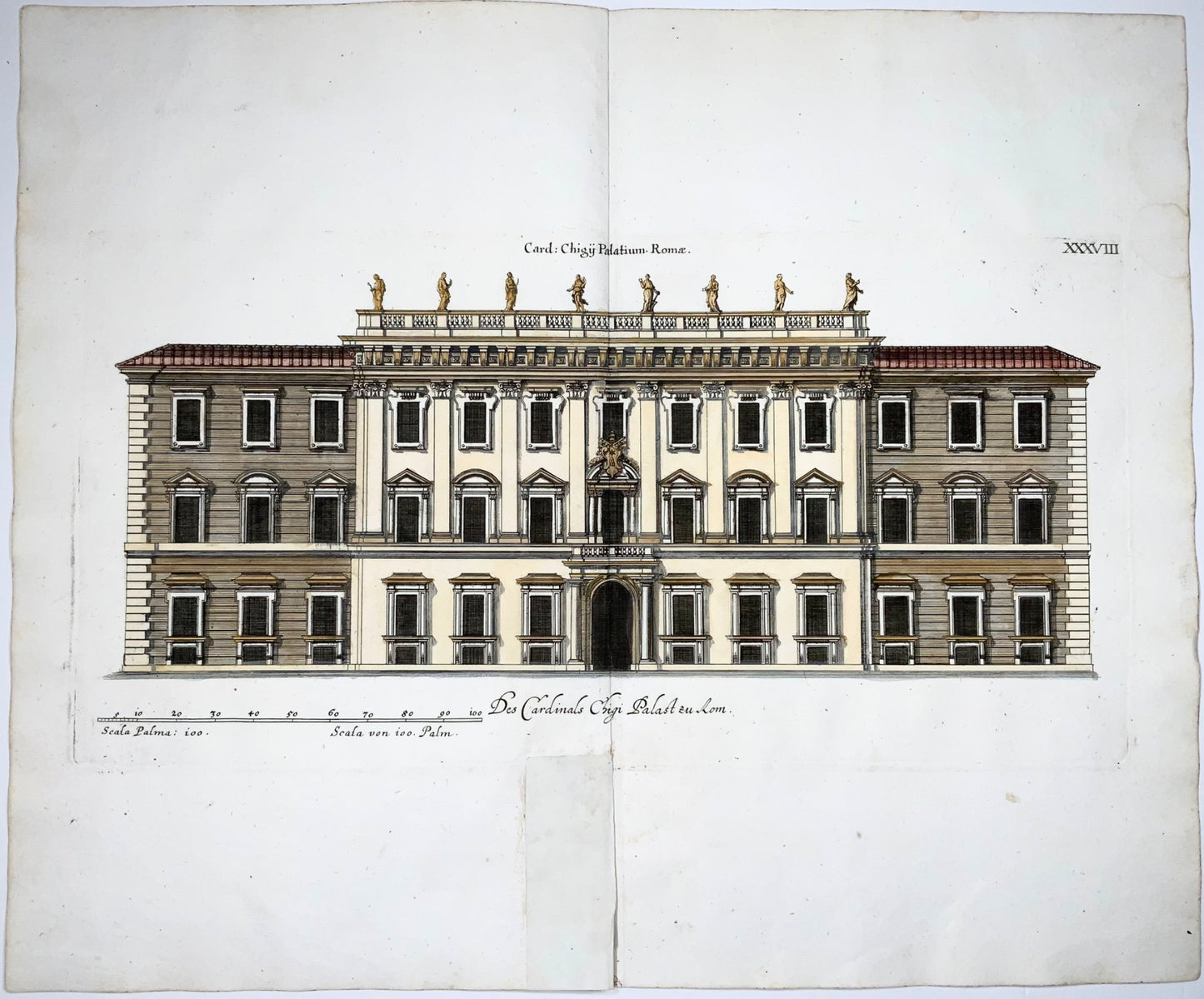 1679 Facade of the Palace of Cardinal Chigi, Rome, Joh. Sandrart, folio engraving