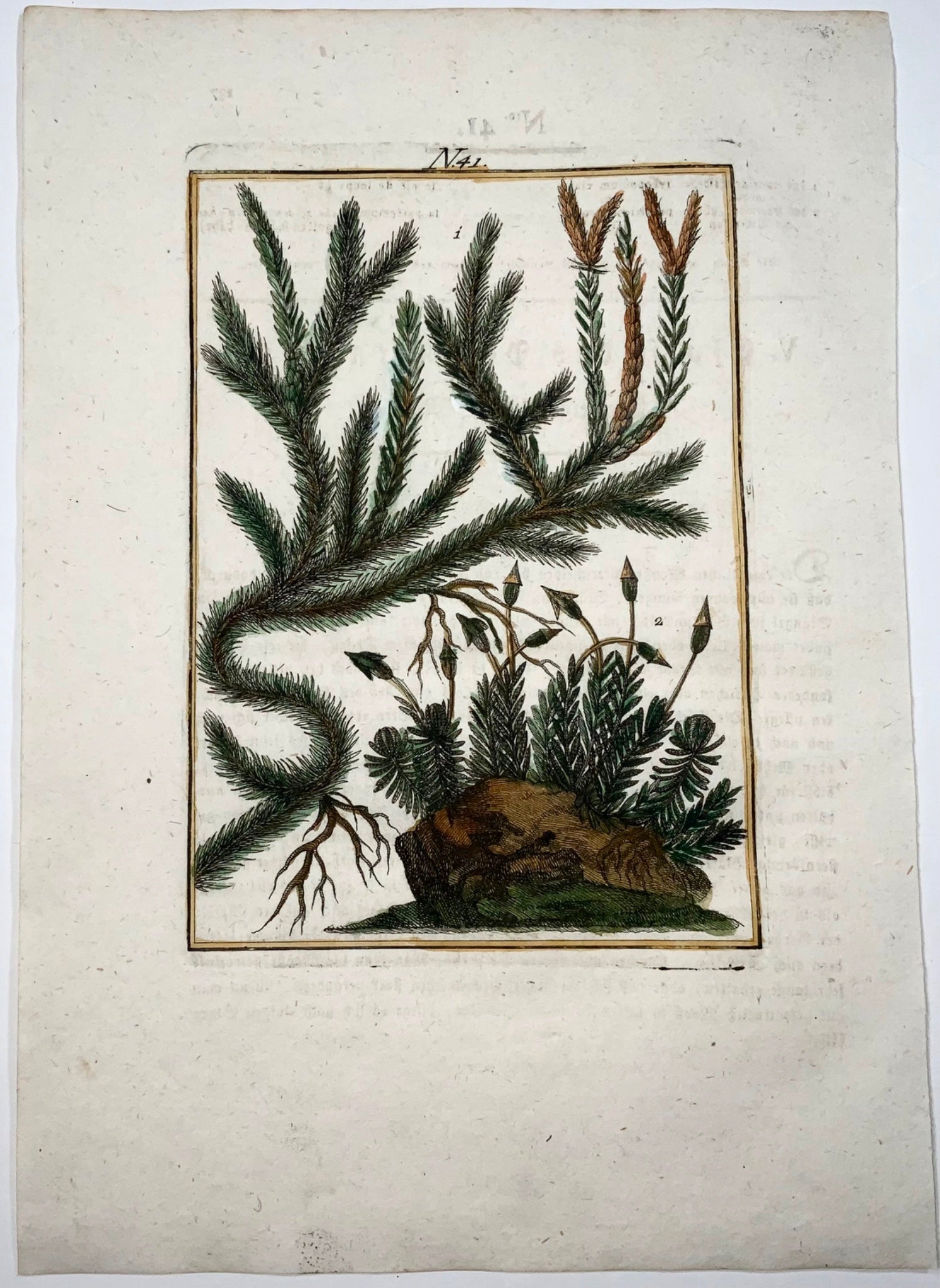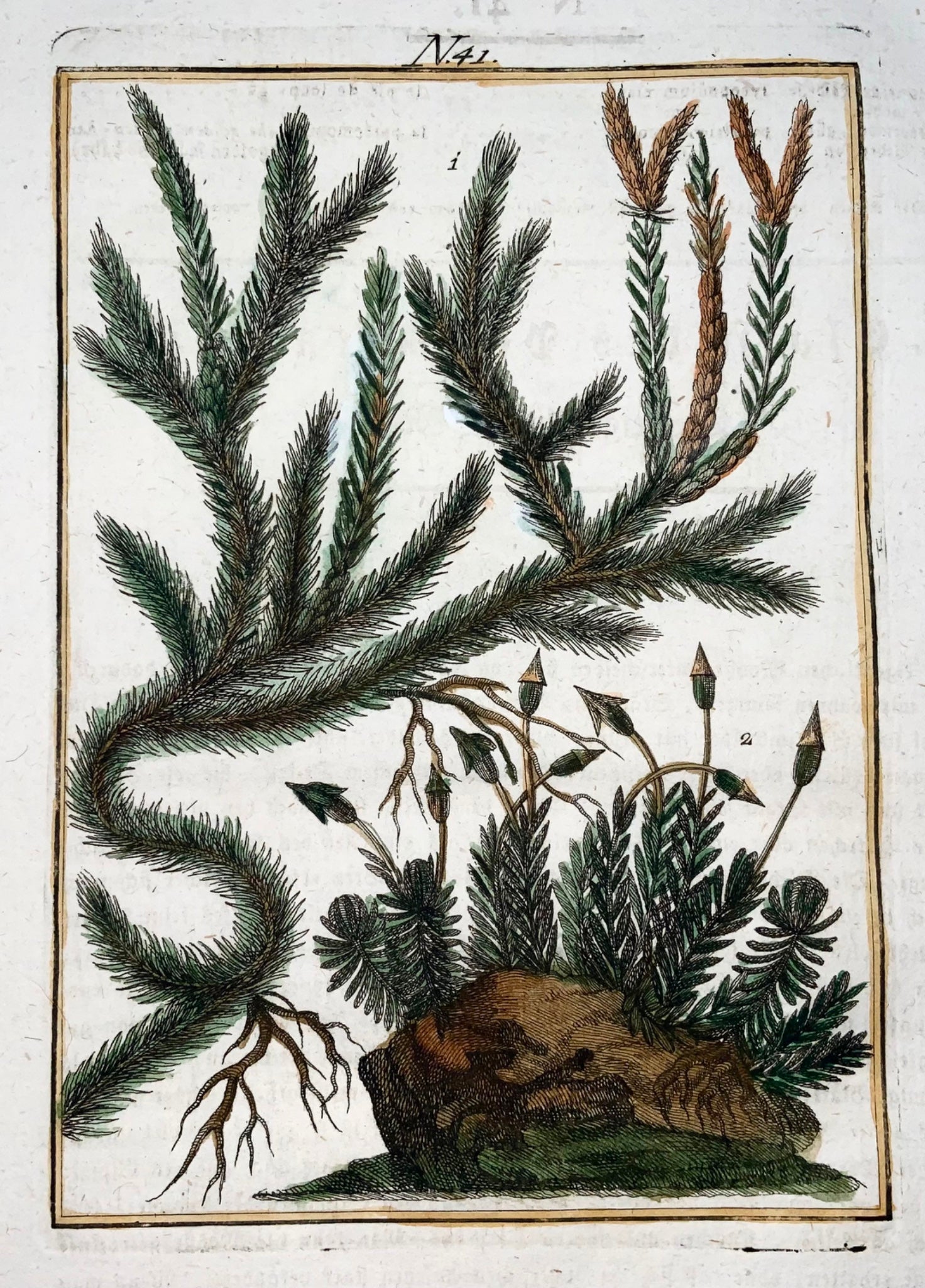 1790 Lycopodium, Moss, Sollerer hand coloured engraving, botany