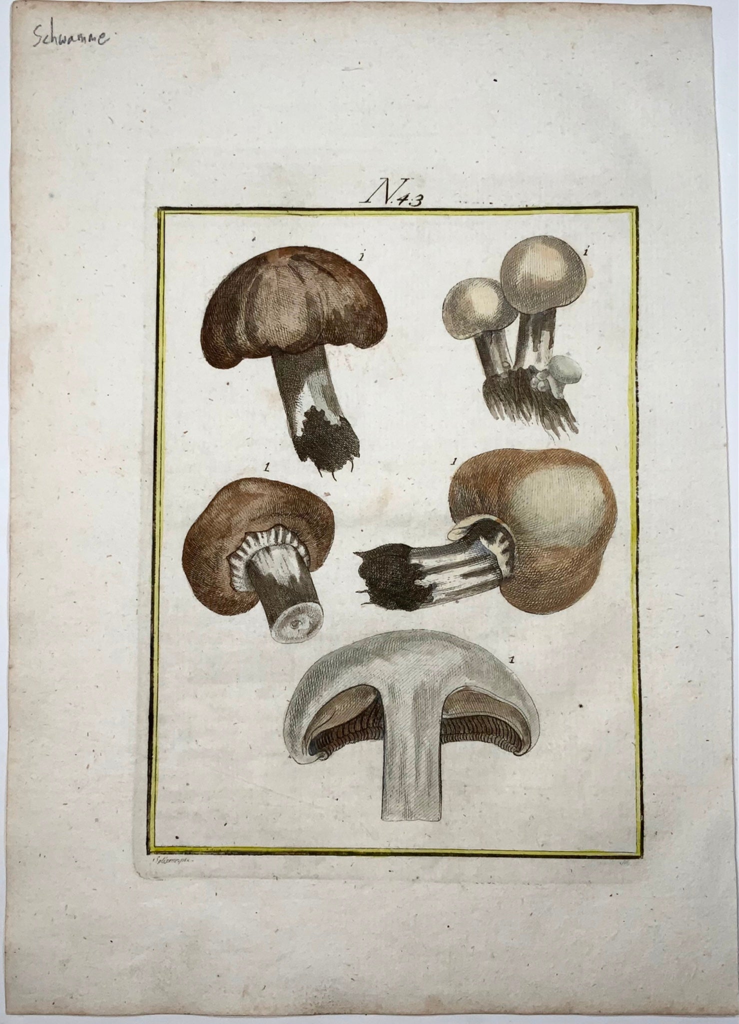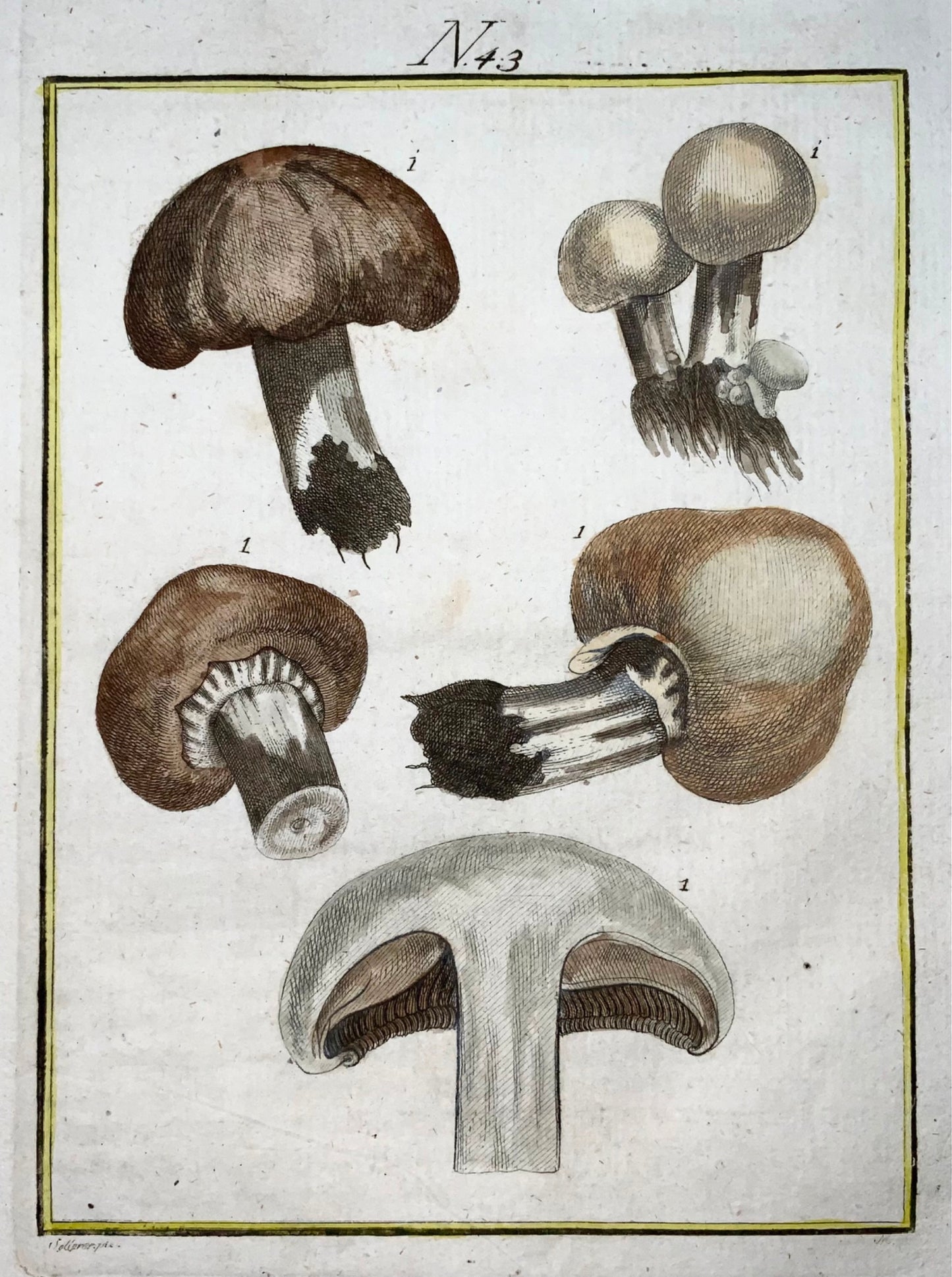 1790 Mushrooms, Fungi, Sollerer hand coloured engraving, agriculture, botany