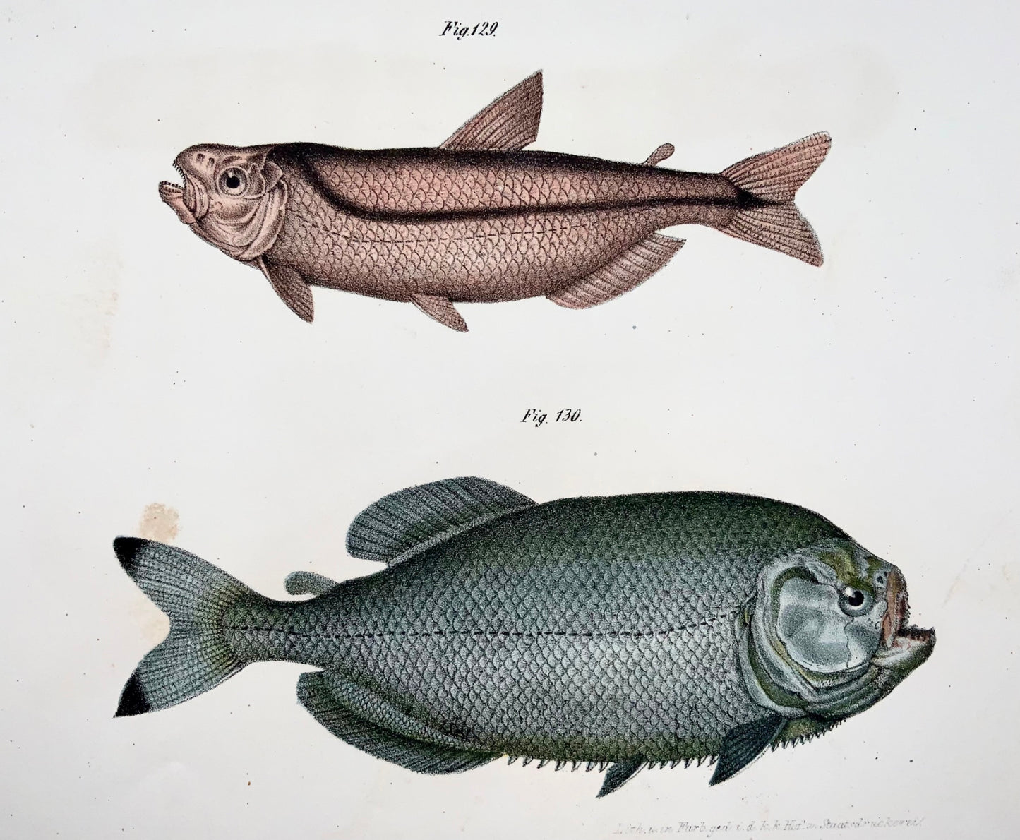 1860 PIRANHA Pleco Tropical Fish - Fitzinger FOLIO colour lithograph - With added hand colour
