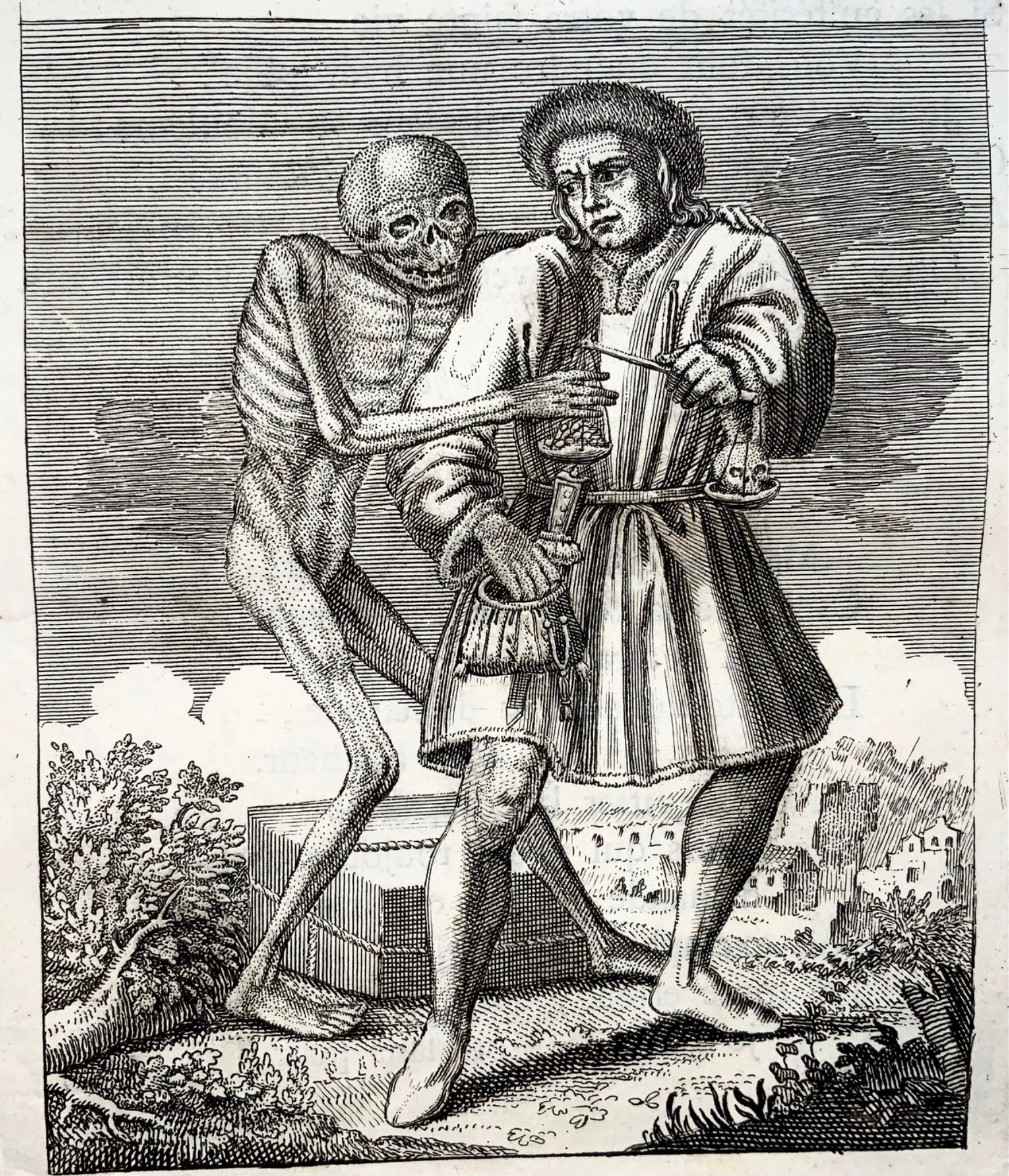 1744 Merian, Dance of Death, the Businessman, copper engraving