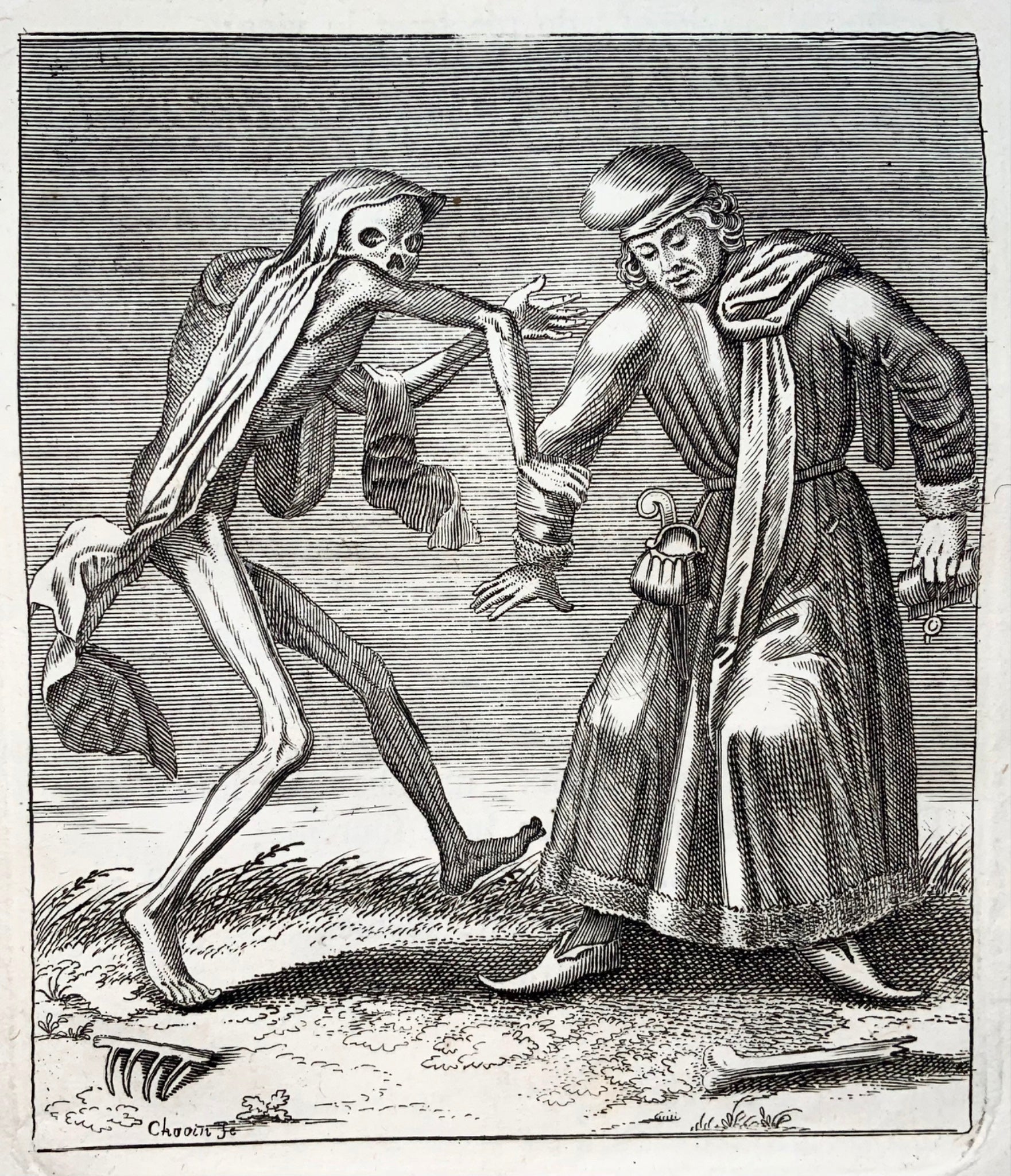 1744 Merian, Dance of Death, the Lawyer, copper engraving