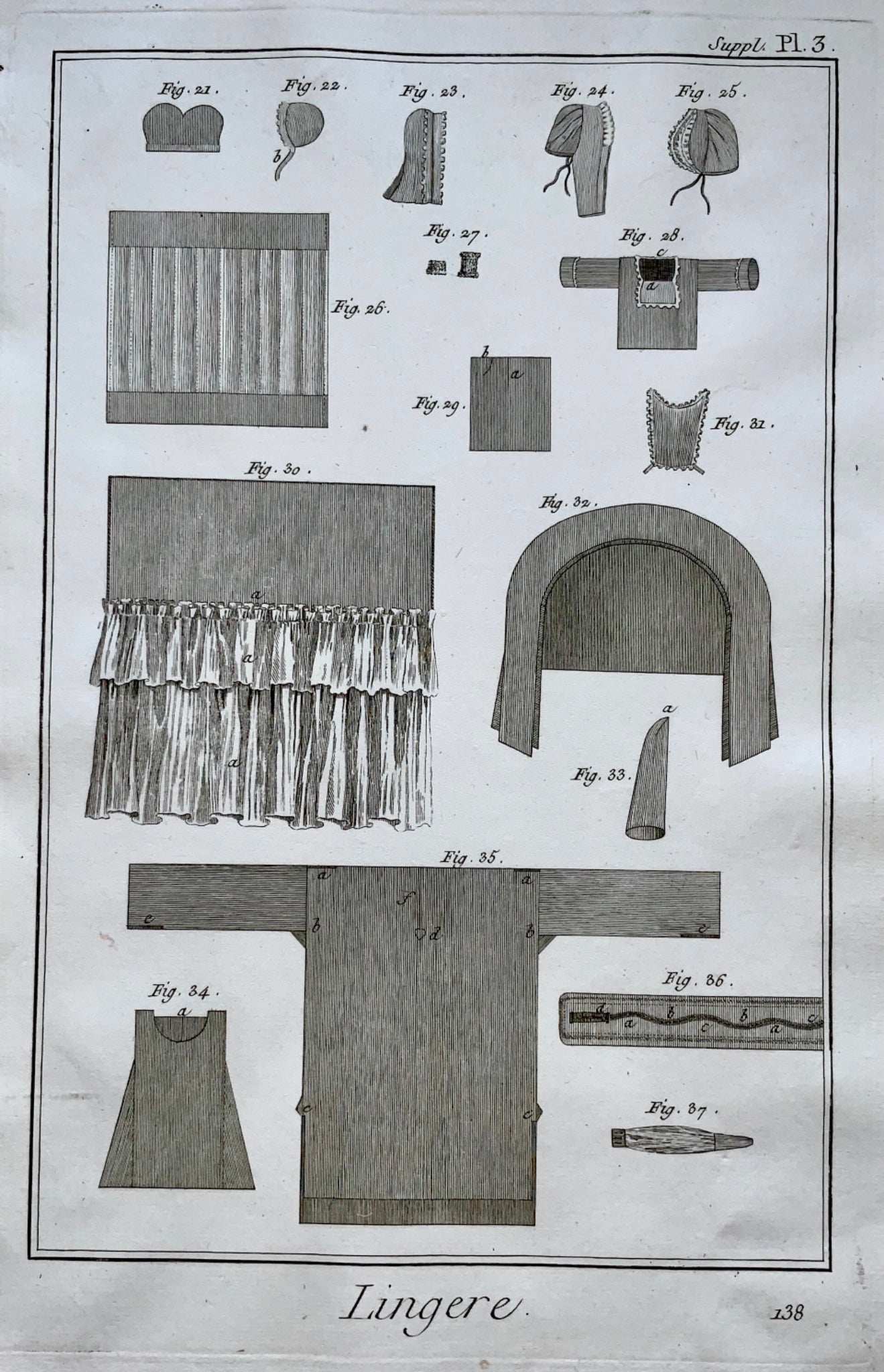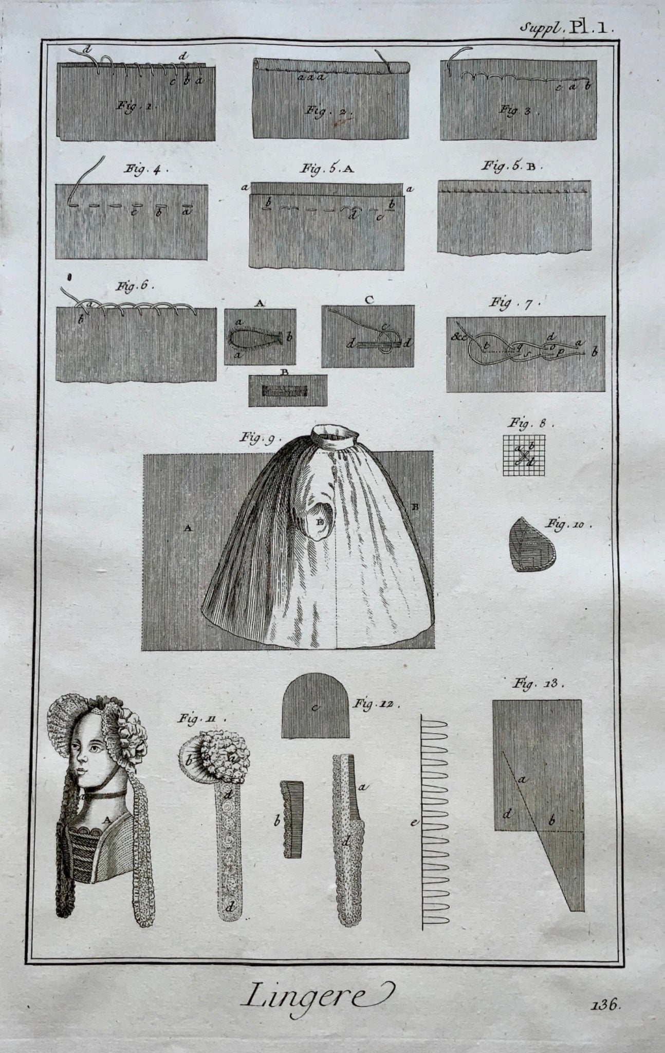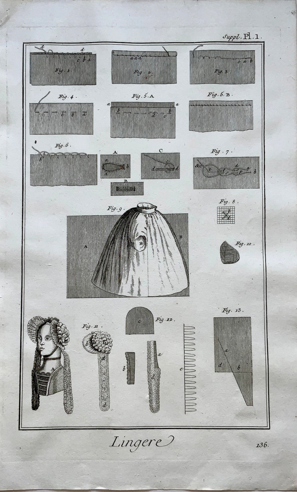 1777 Travaux d'aiguille 'Lingère', Sous-vêtements, Couture - 4 grands in-folios - Mode - Commerce