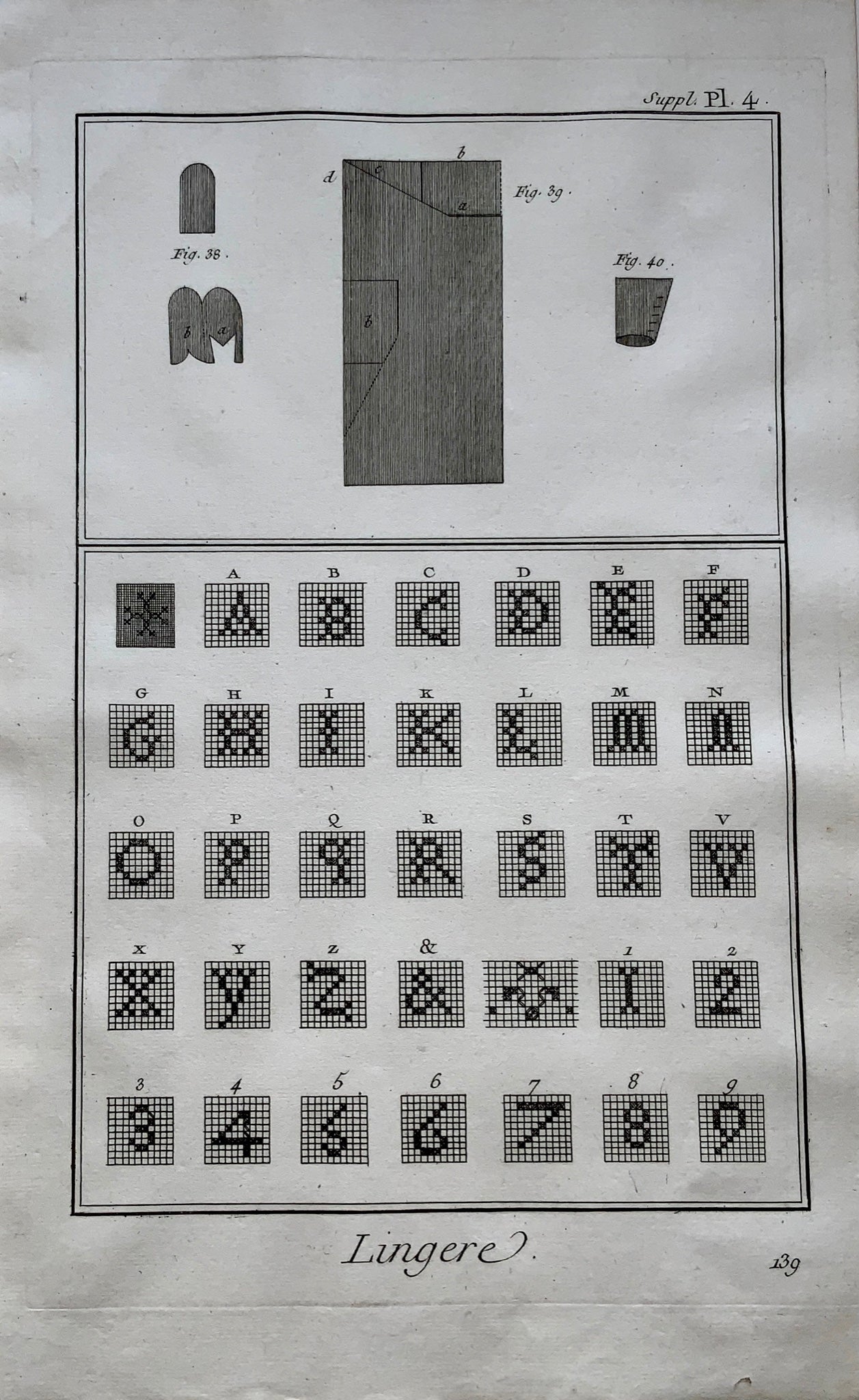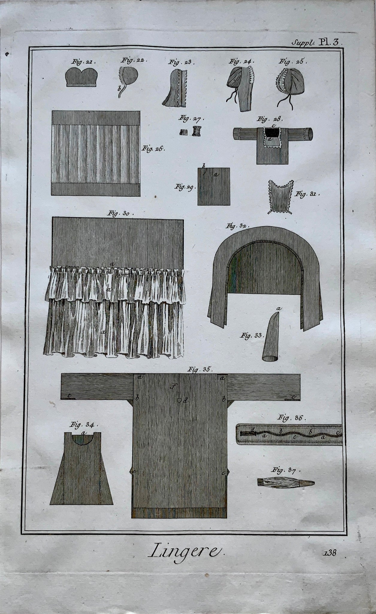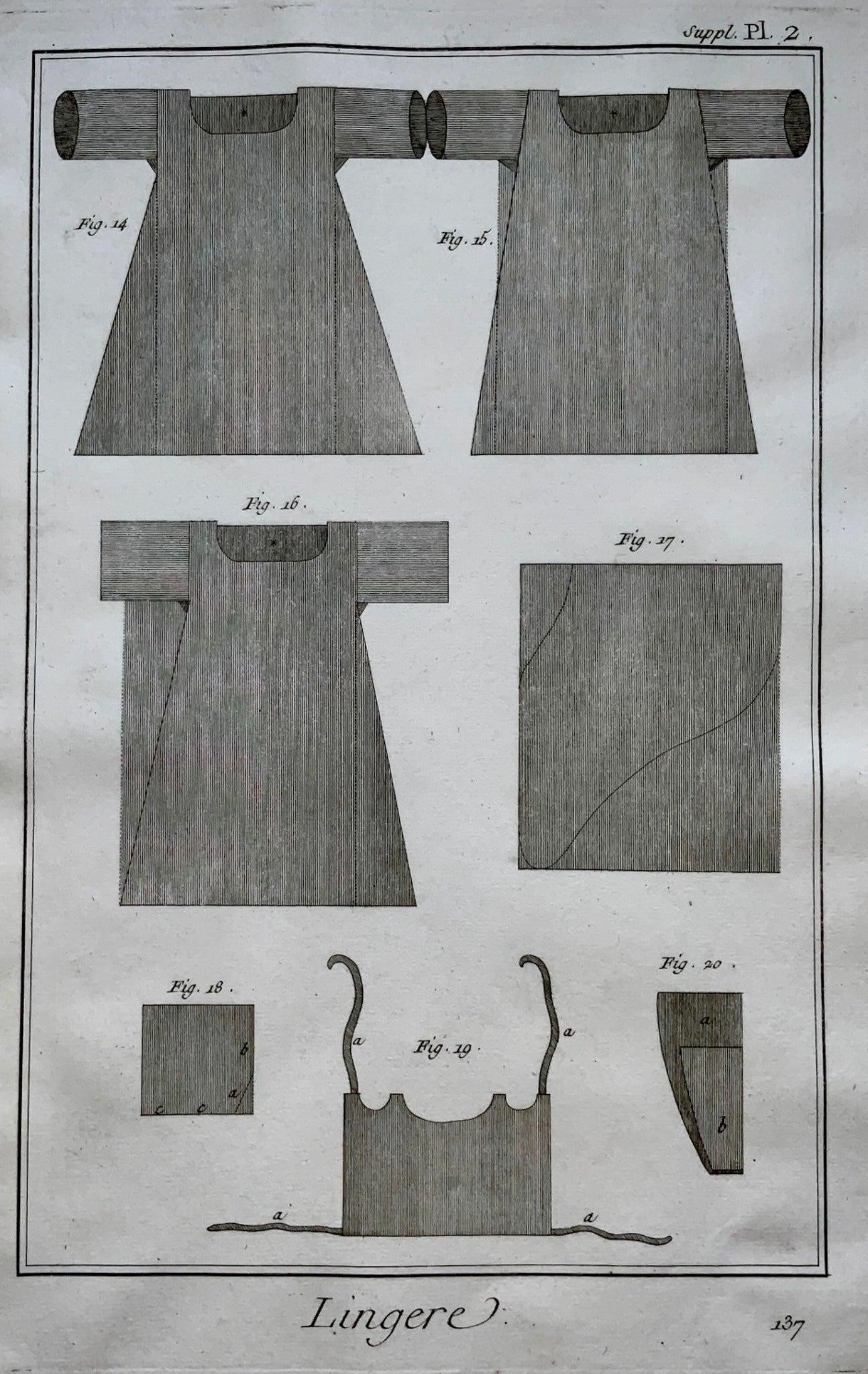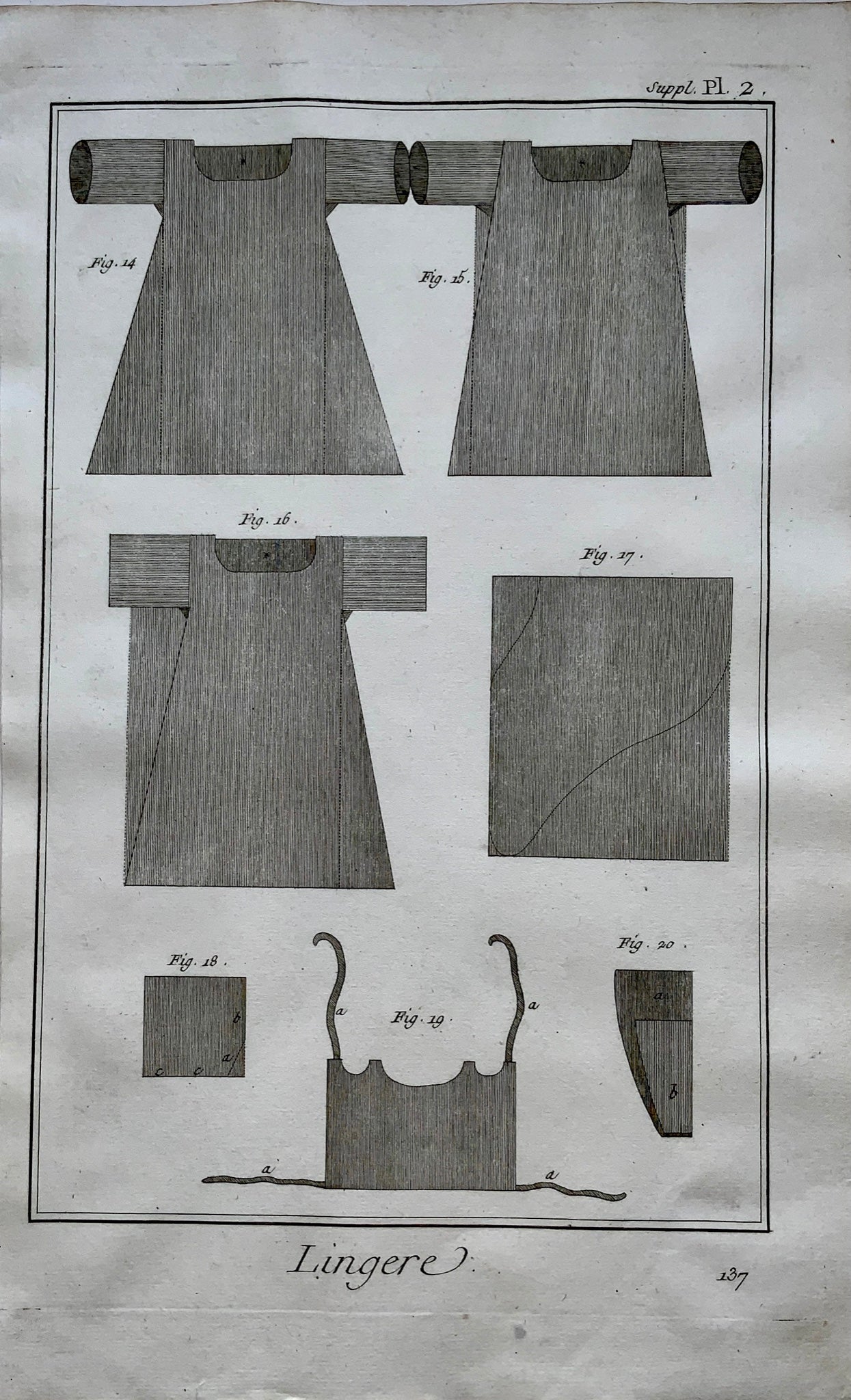 1777 Travaux d'aiguille 'Lingère', Sous-vêtements, Couture - 4 grands in-folios - Mode - Commerce