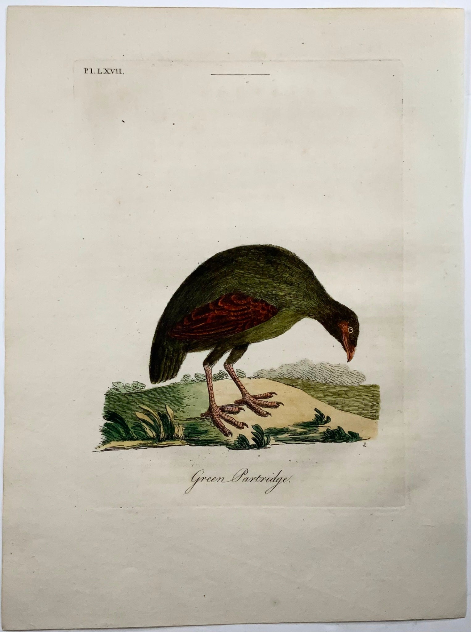 1785 John Latham - Green Partridge - hand coloured engraving - Ornithology