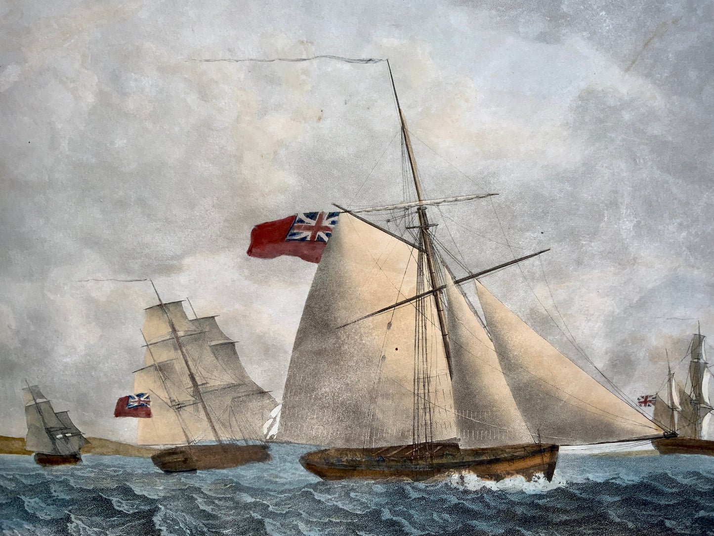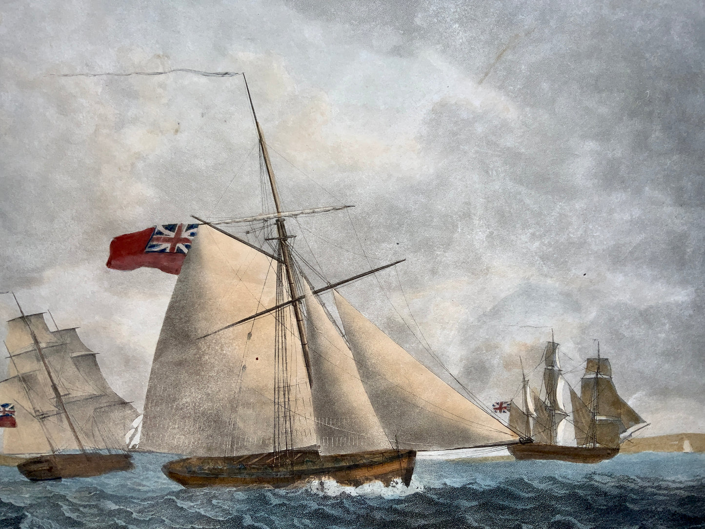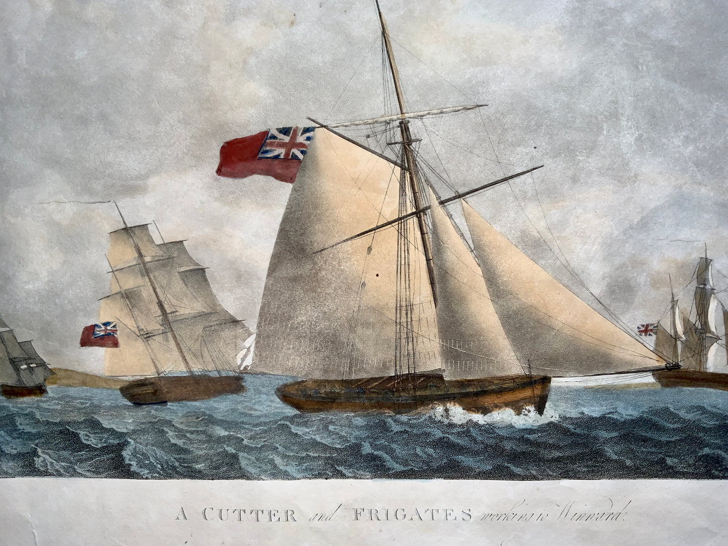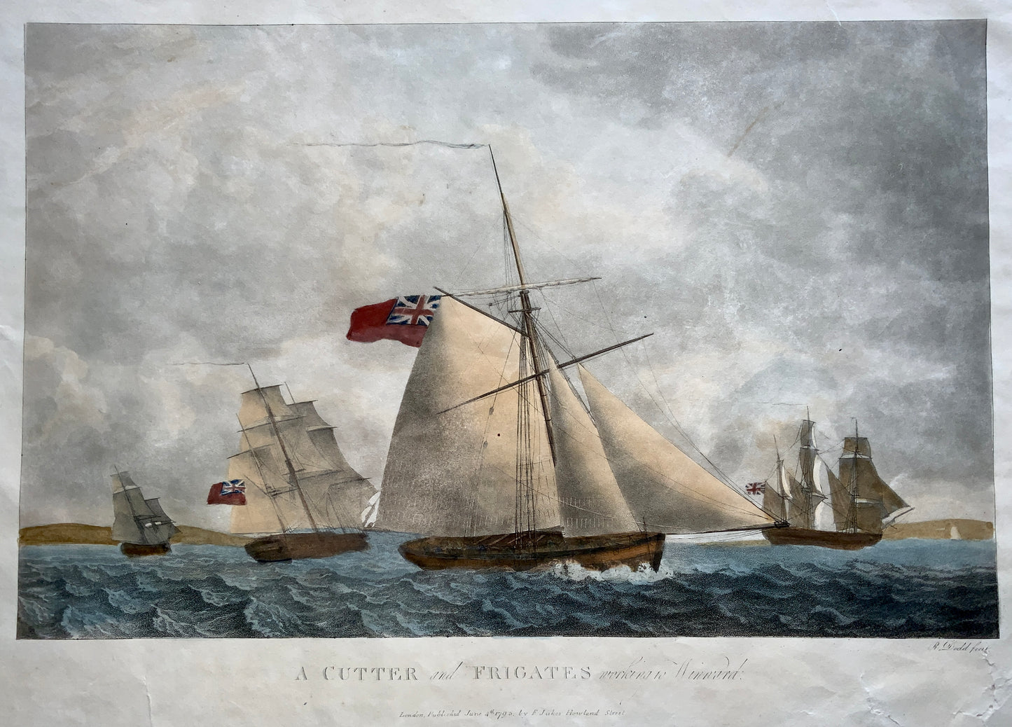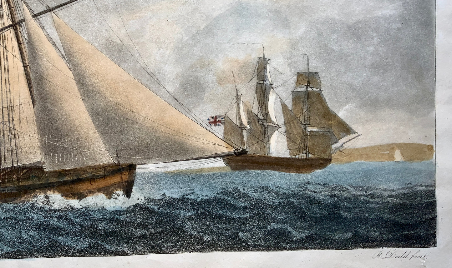 1795 Robert Dodd - Un cotre et des frégates - Voiliers, Maritime - Aquatinte couleur à la main