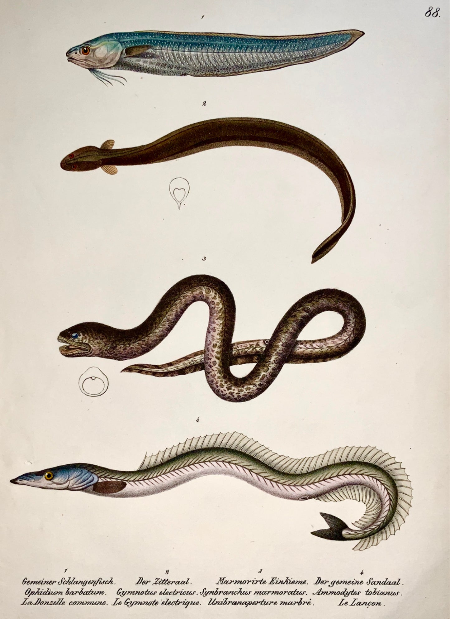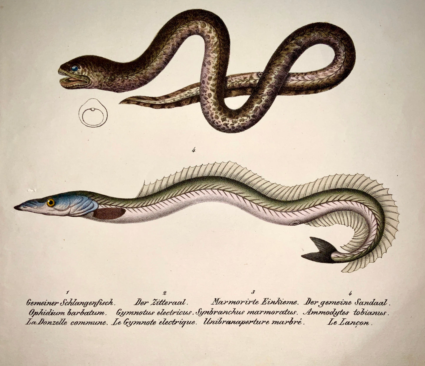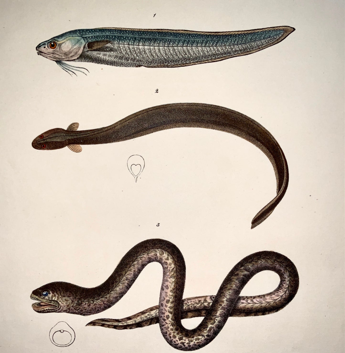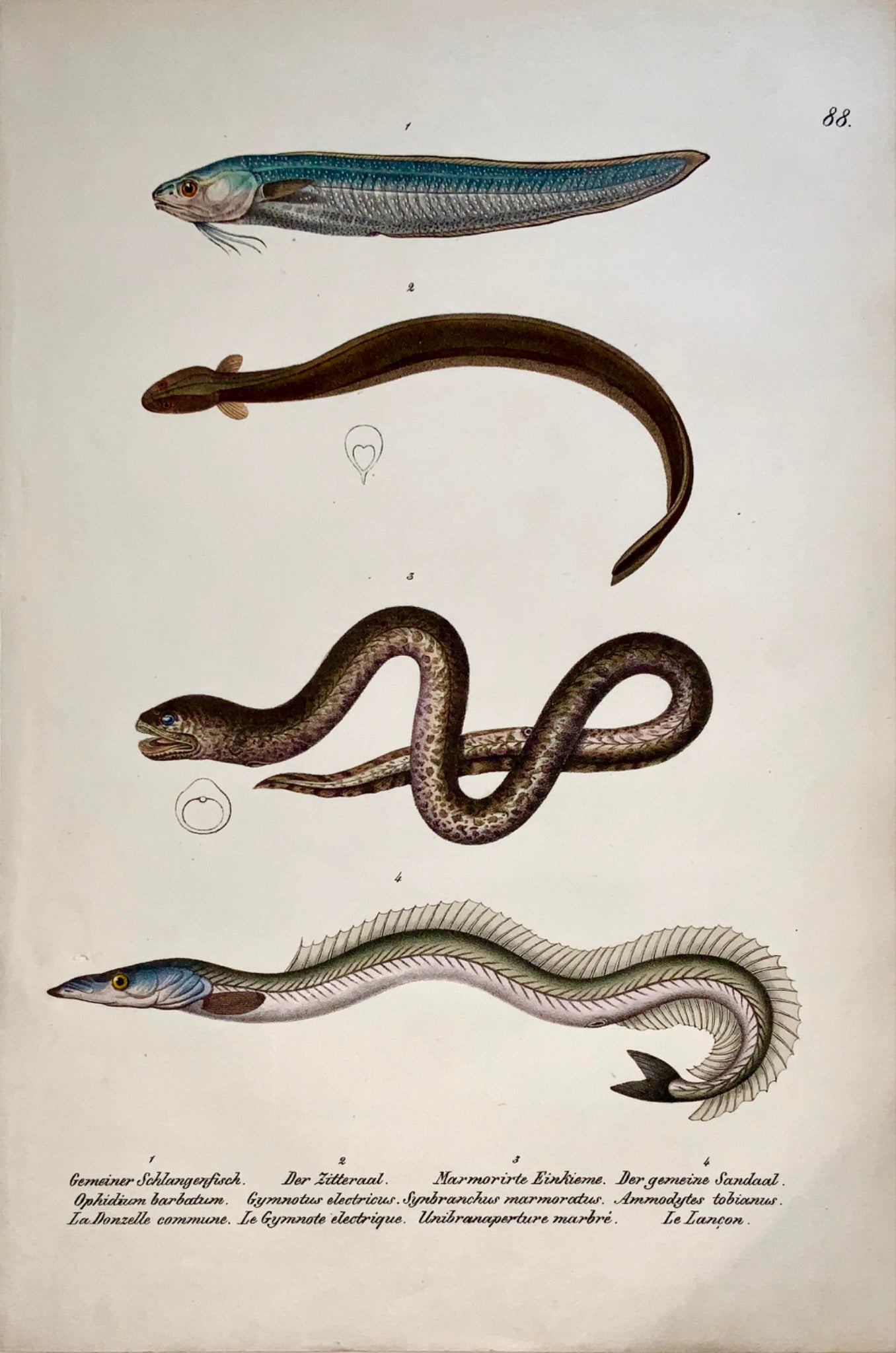 1833 H. Schinz (1777-1861) ANGUILLE Lance Fish - Handcol. lithographie sur pierre