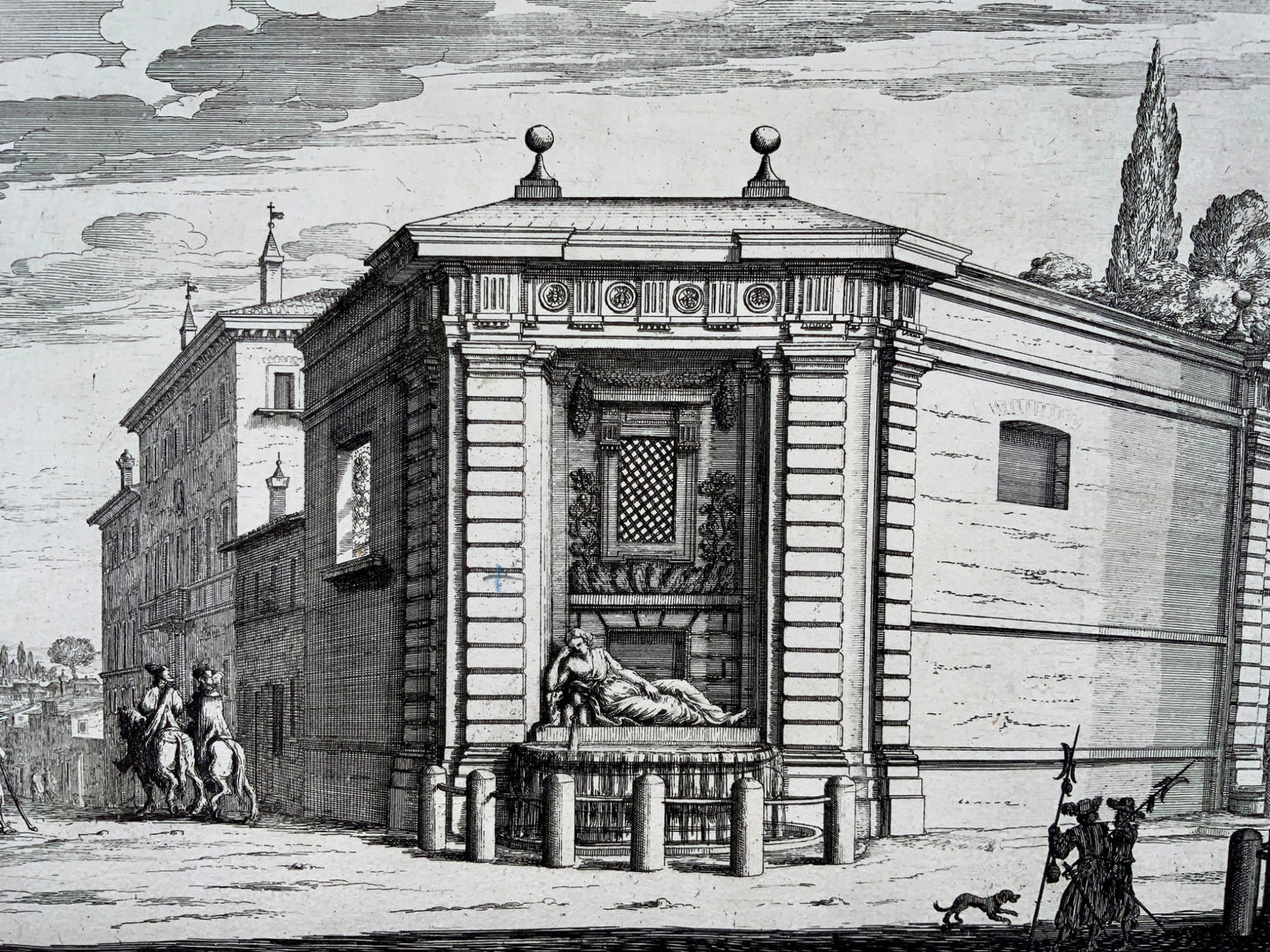 1676 G. B. Falda (1643-1678) Diana Fountain, Rome, Italy 50 cm - Master engraving