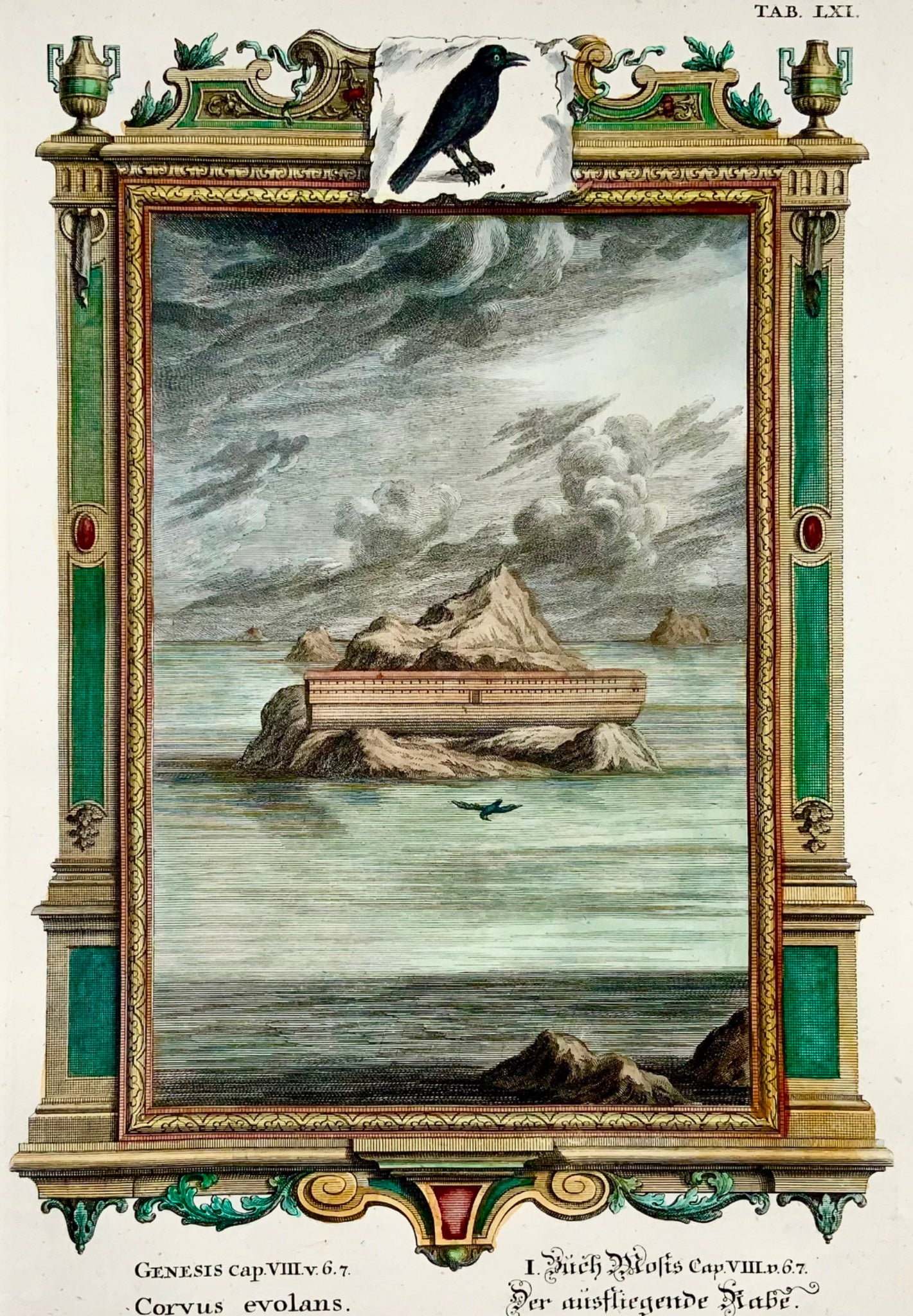 1735 Noah’s Ark, raven, J. J. Scheuchzer, Bible engraving, folio, hand coloured