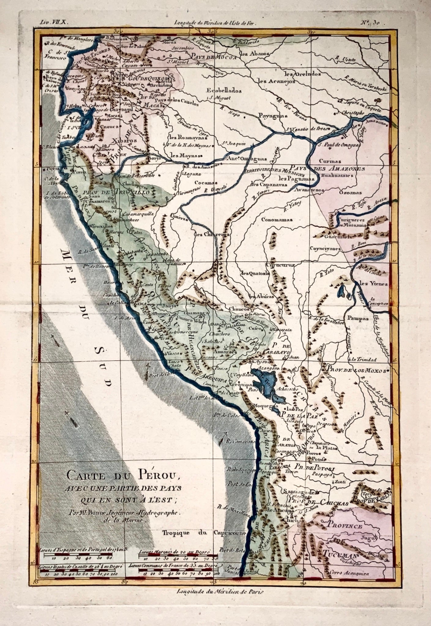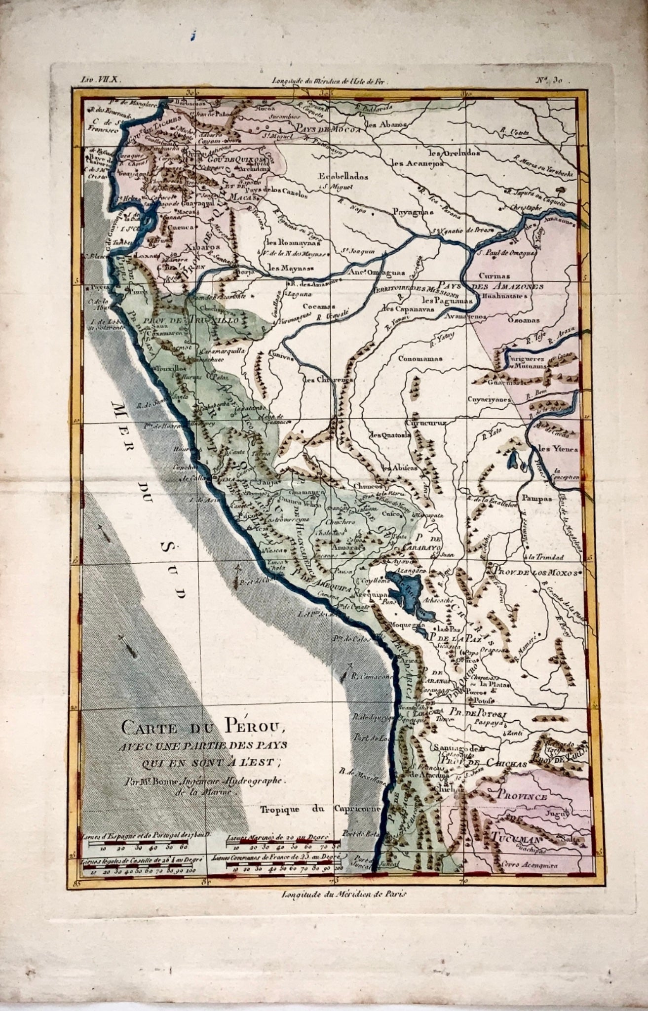 1780 Bonne - Antique Map PERU ‘Carte du Pérou’ Amazon - Handcoloured