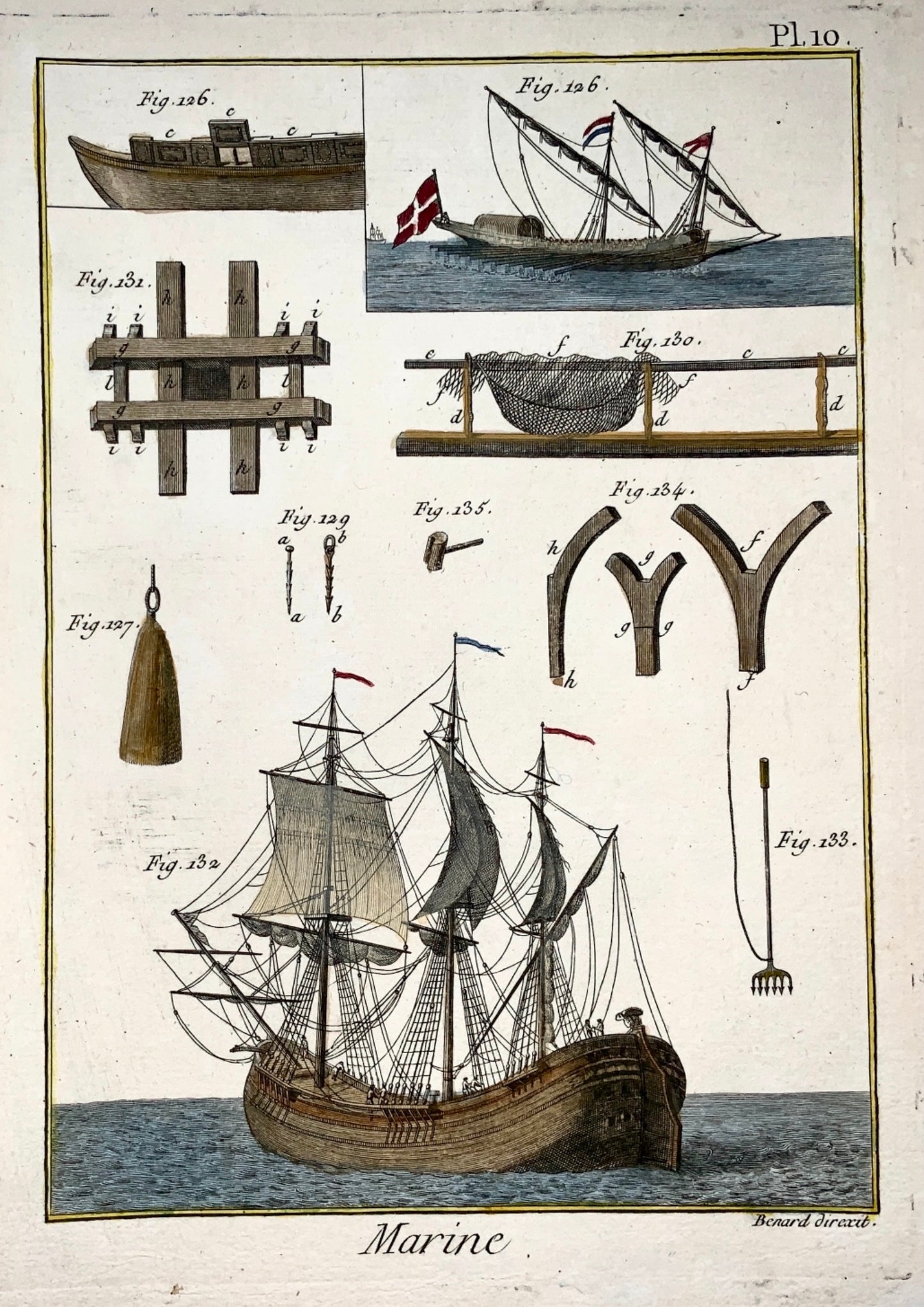 1783 Vial du Claurbois SHIPS - BOAT BUILDING handcol FOLIO 38cm original - Maritime