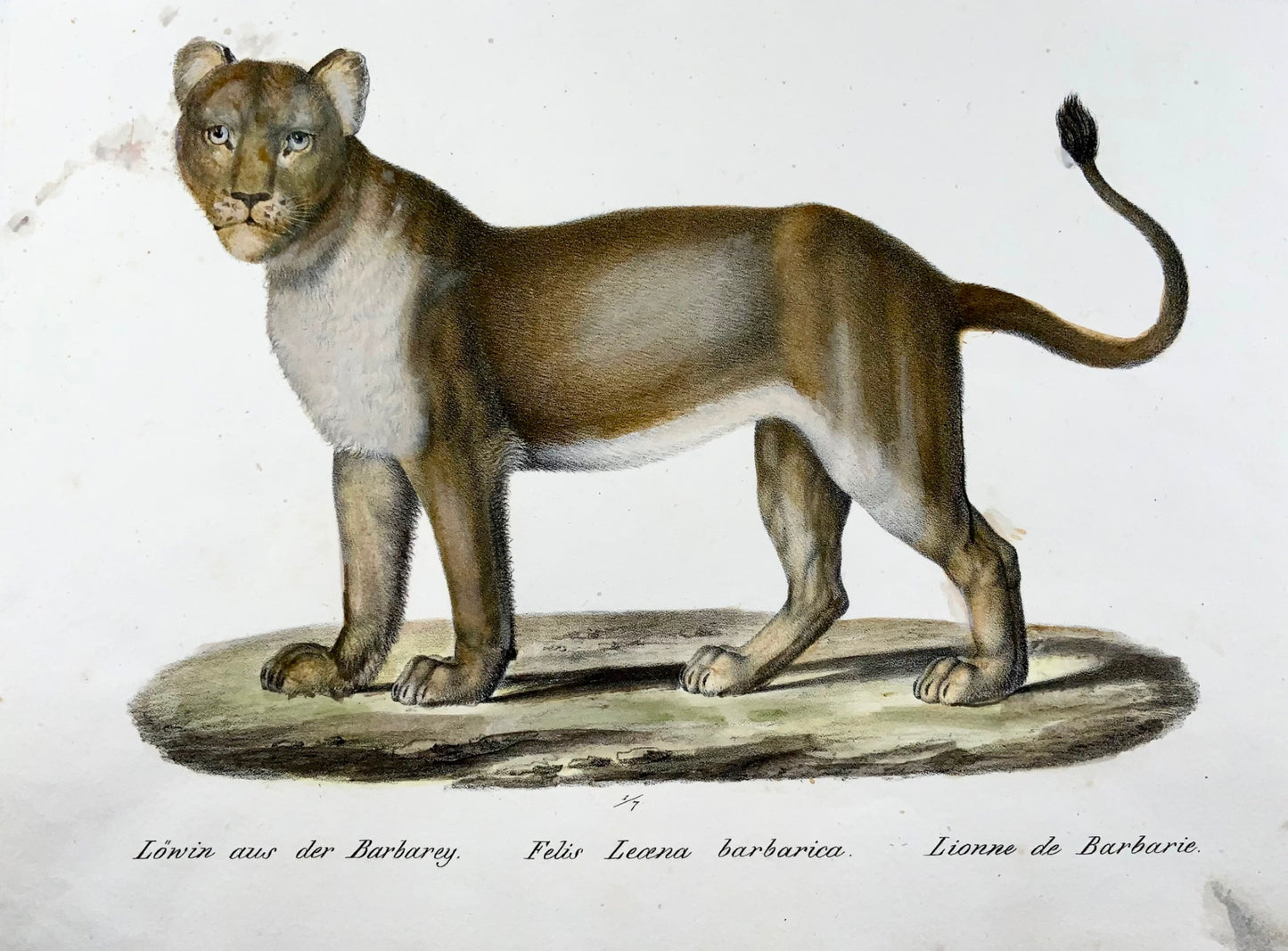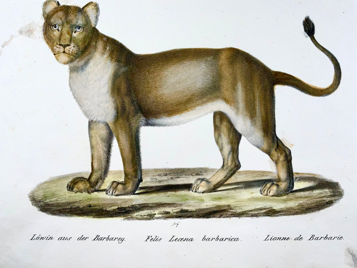 1824 Barbary Lion - K.J. Brodtmann ORIGINAL hand colored FOLIO stone lithography - Mammal