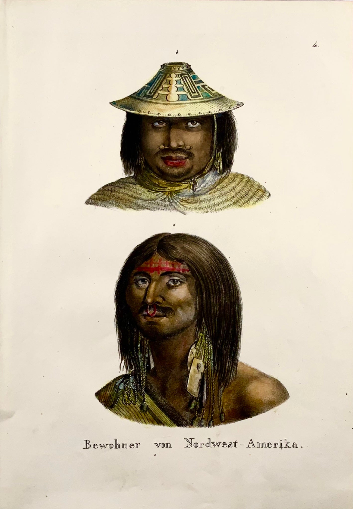 1824 Native Americans NW - K.J. Brodtmann hand colored FOLIO stone lithography - Ethnology