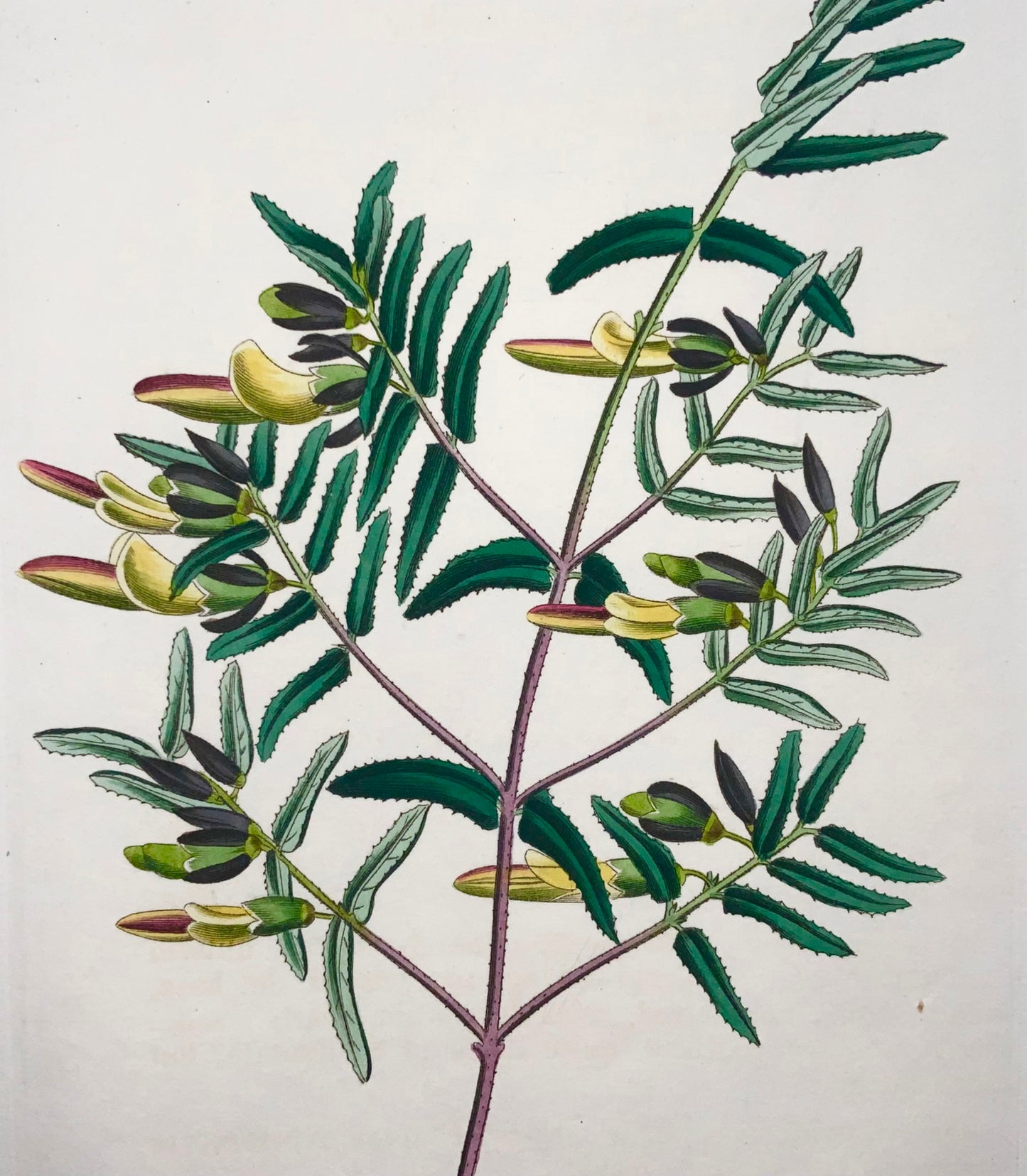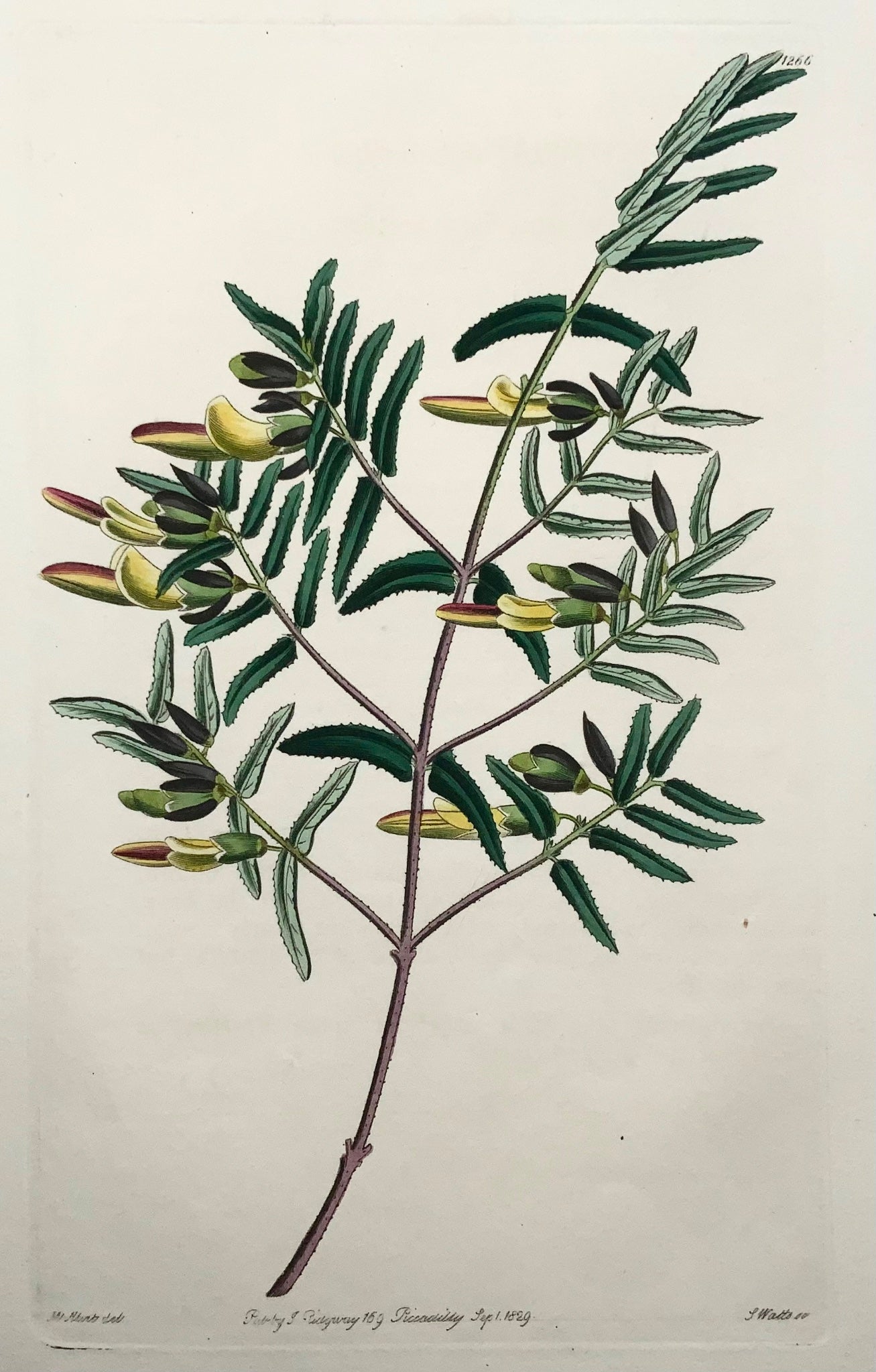 1829 Schotia, Watts, copper engraving, fine original hand colour, botany