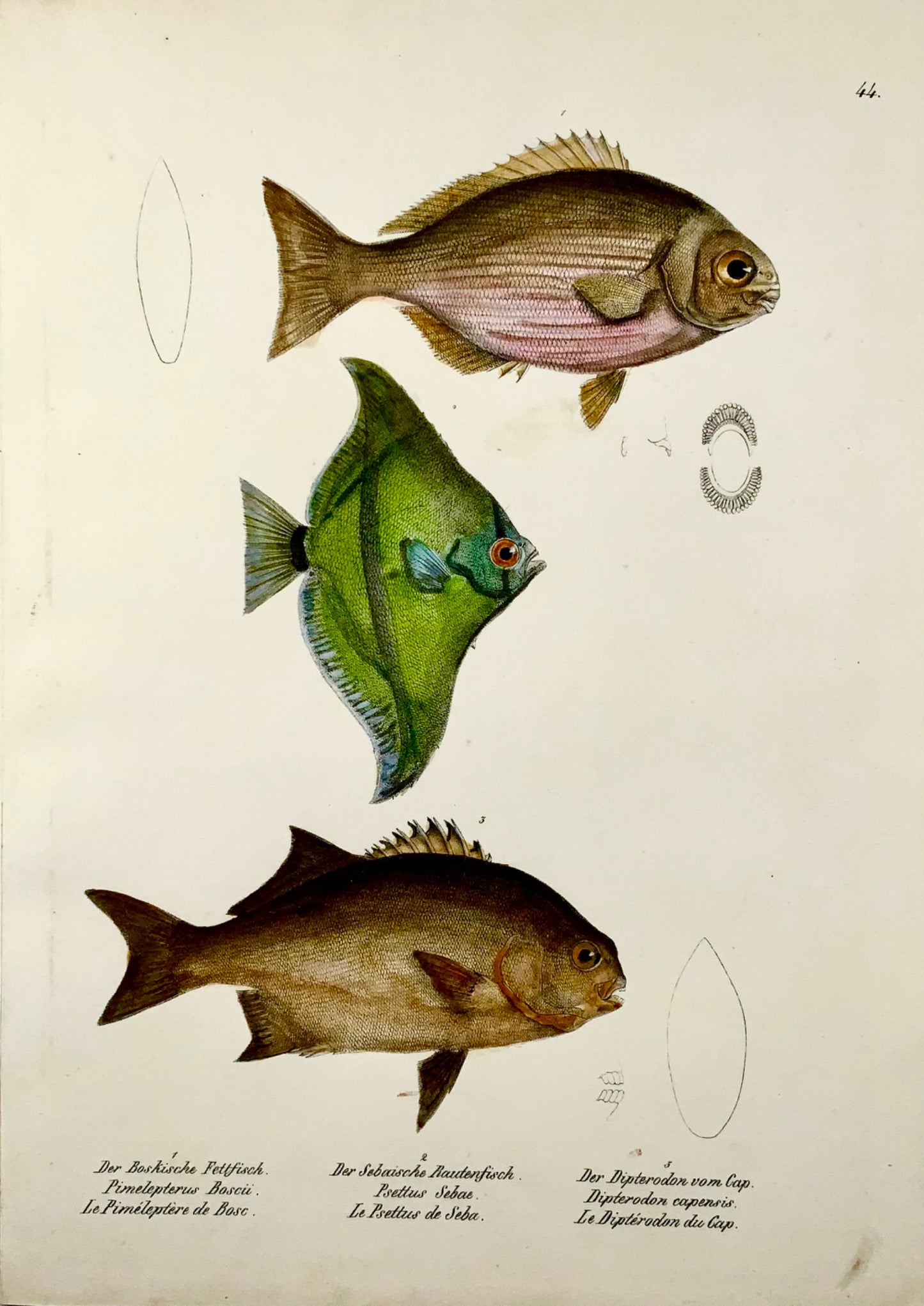 1833 H. Schinz (b1777) Angelfish, Apogon reef fish, handcol. stone lithograph