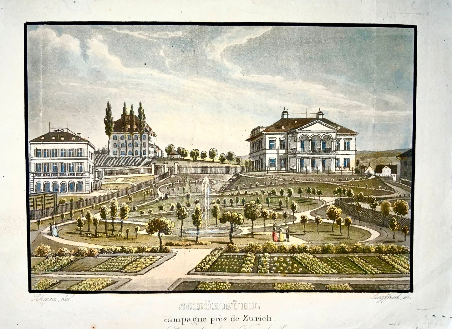 1840c Park Schönbühl, Zurich, Switzerland, Schmidt, aquatint, hand colour