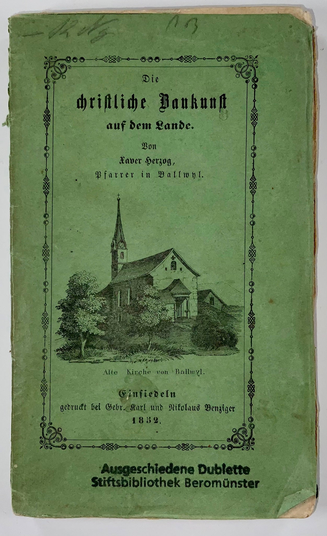 Extremely rare. Just 4 copies on OCLC. Xaver Herzog uses the example of Ballwil church to document the changes in taste and the perceptions of art over the previous 150 years. No other copy of this sought after work available online.
