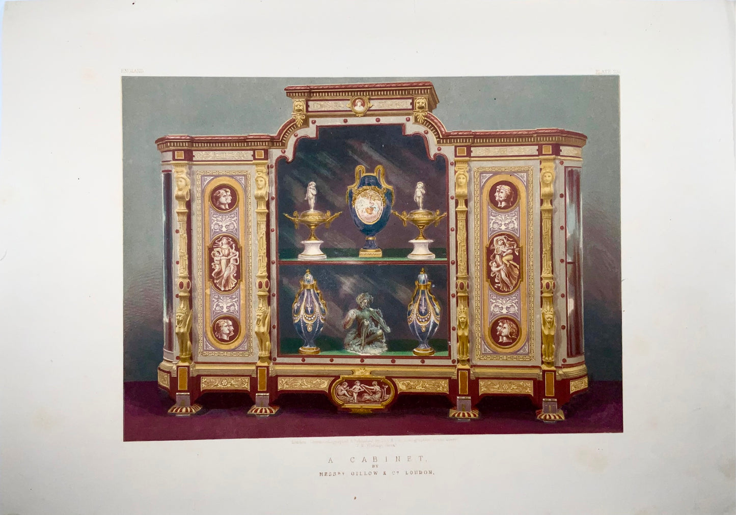 1862 Cabinet, Gillow, large folio, fine colour lithograph, furniture