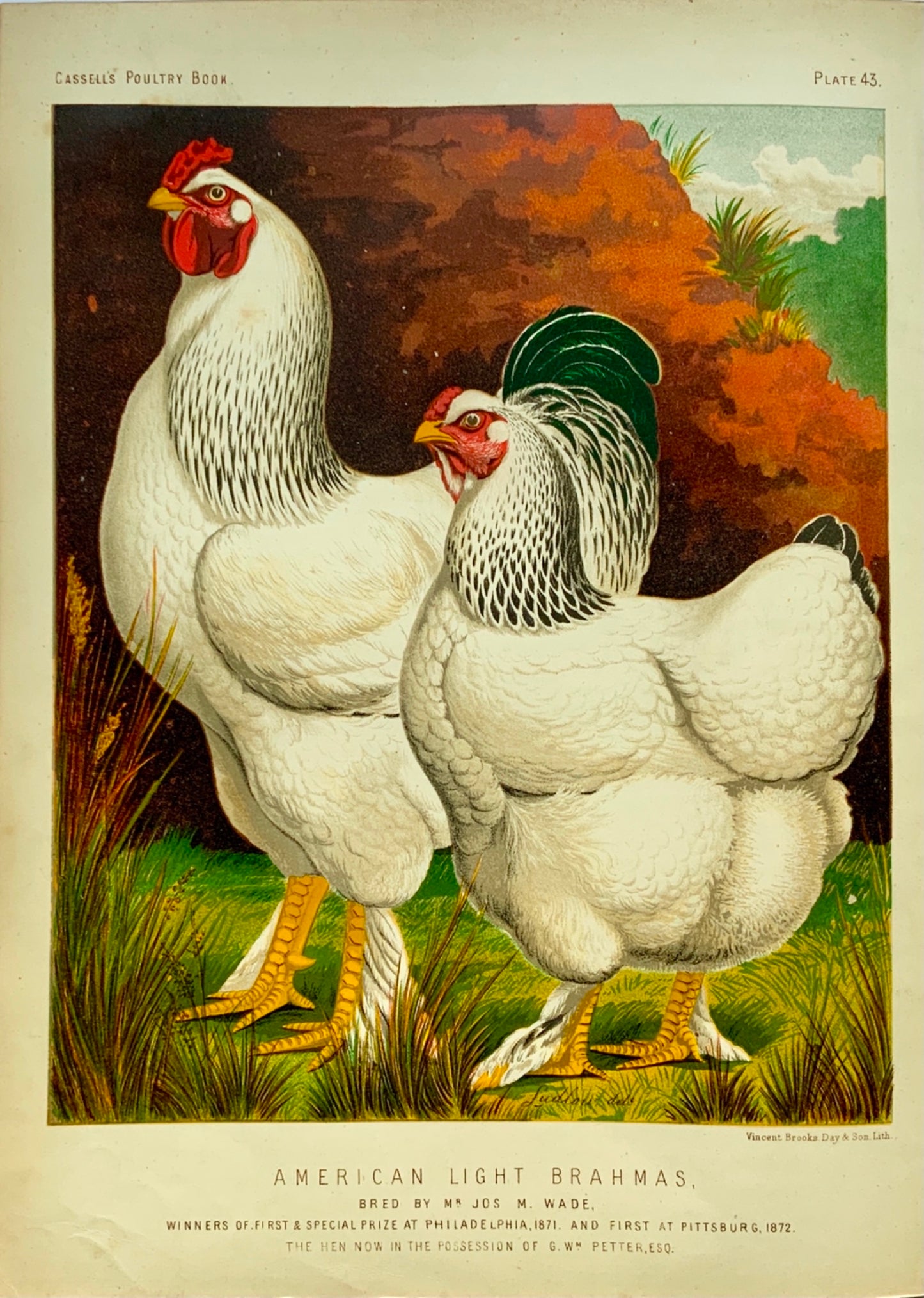 Original large quarto chromolithographs from rare First Edition of The illustrated book of poultry : With practical schedules for judging, constructed from actual analysis of the best modern decisions / by Lewis Wright 1838-1905.